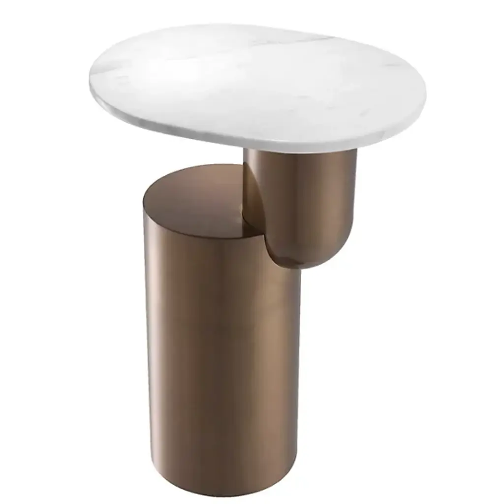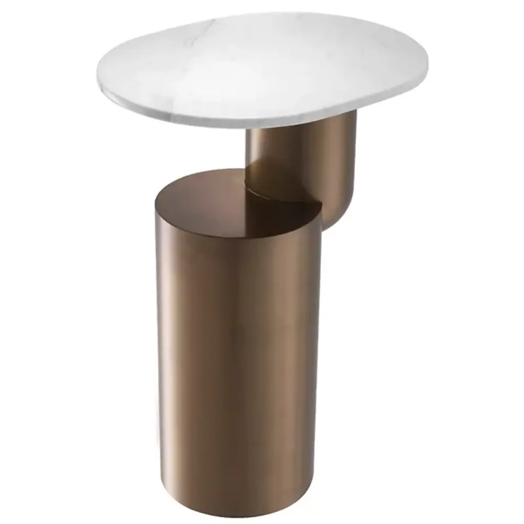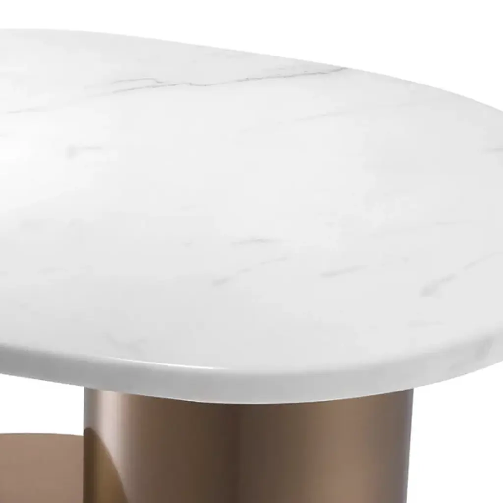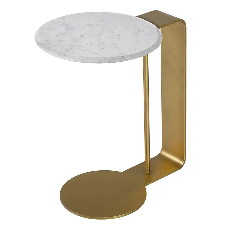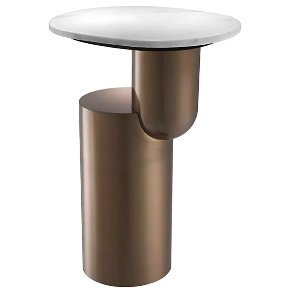 The streamlined Tosca Side Table by Eichholtz brings a contemporary sensibility to your decorative layout. Steel has been intricately worked into a cylindrical formation. At the edge of this supporting base, the metalwork effortlessly contours into an elevated, equally smooth, which provides the foundation for a circular tabletop. The tabletop’s bolstering segment gives the appearance of freely hanging, calling attention to this furnishment’s intentionally asymmetrical design. Display your treasured possessions or contained beverages with ease.
