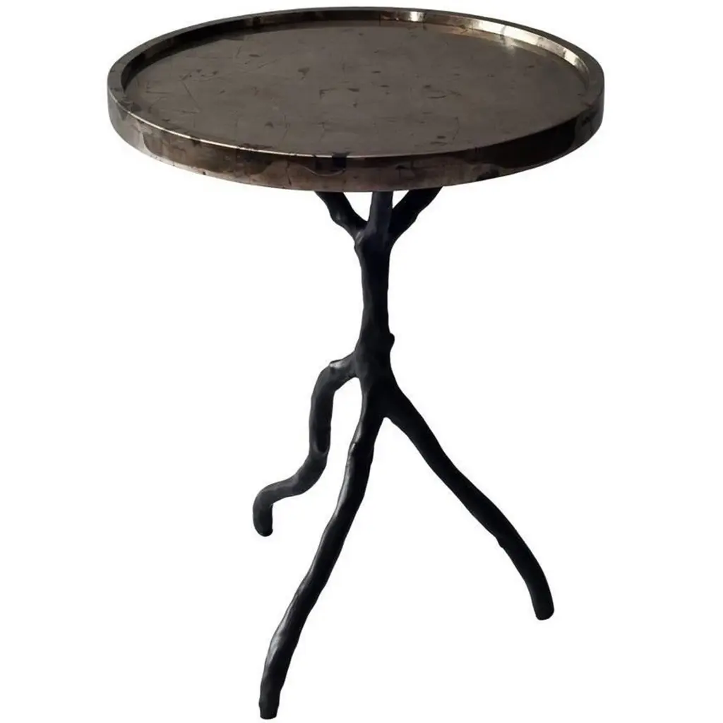Created with a sculptural silhouette, this beautiful side table holds an artistic presence that captures attention in any interior. Made from cast aluminum for a high-quality feel, its antique nickel-plated finish gives it a patina for an old-meets-new aesthetic, bringing style and function to modern and transitional spaces.