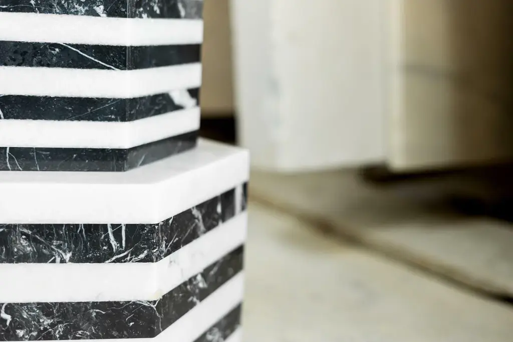 Created to evoke skyscrapers of Manhattan and the always edgy city of New York with an eclectic style, using white and black tones of India White and Nero Marquina marbles bring the elegant and potent touch of the city into your home.