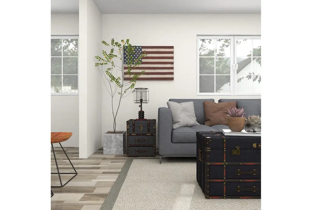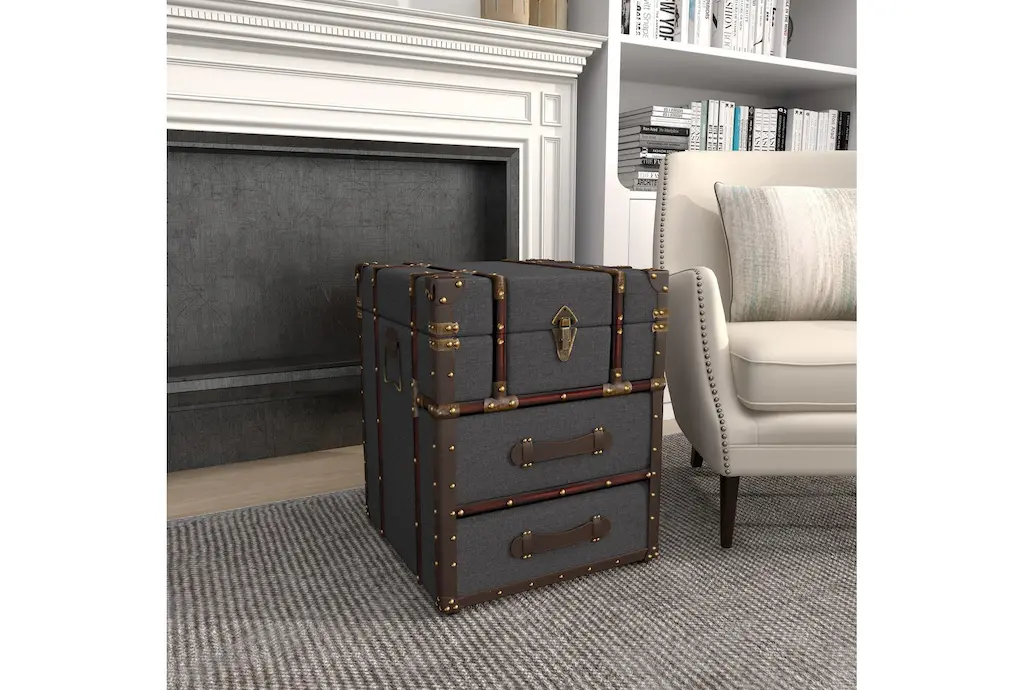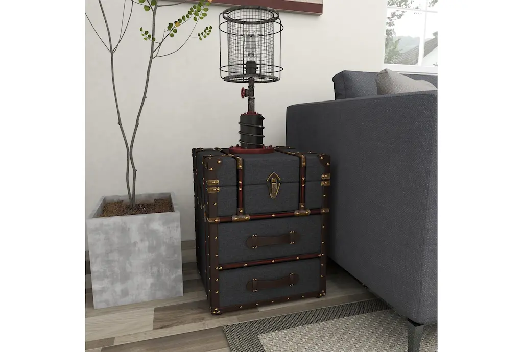 Bring a finishing touch to your home with an inviting appeal with this beautifully crafted accent table. Maintain a clutter free zone and stay organize with this chic cabinet. Storage trunk inspired cabinet with drawers will complement dark leather sofa with other heirloom decor for the perfect antique design style. This item ships in 1 carton. Blue accent table features 2 drawers with 25 lbs weight limit. Suitable for indoor use only. This item ships fully assembled in one piece. Maximum weight limit is 100 lbs. This is a single blue colored end table. Traditional style.
