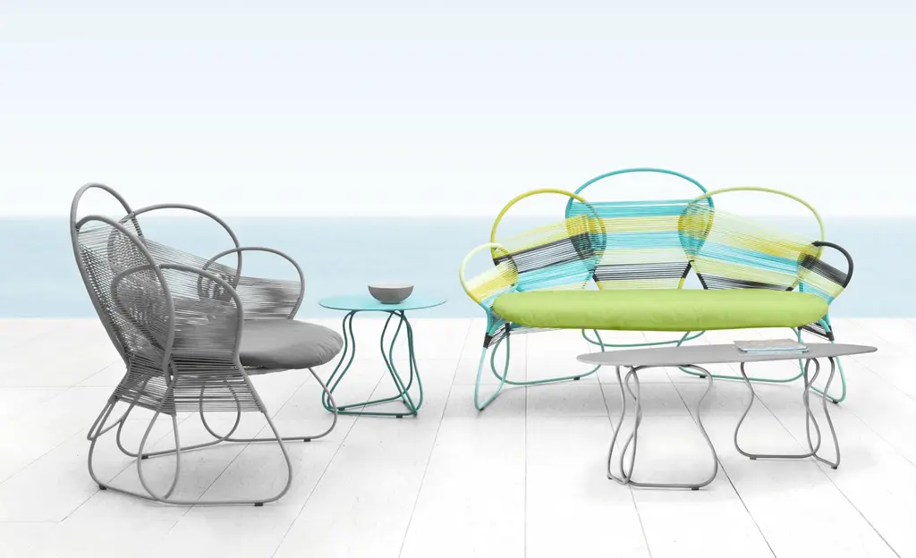 This vibrantly hued collection features an innovative design by Federica Capitani. Pushing the boundaries of traditional weaving, Trame has five interlocking asymmetrical loops that create interesting shapes.