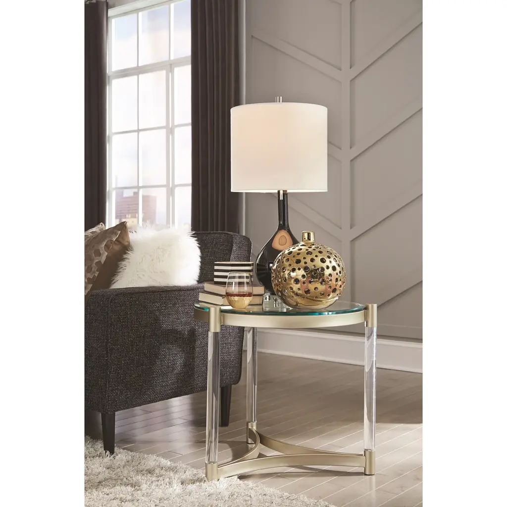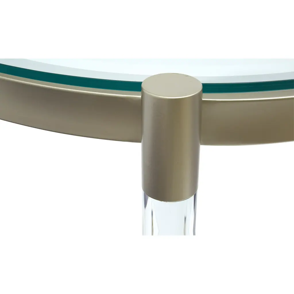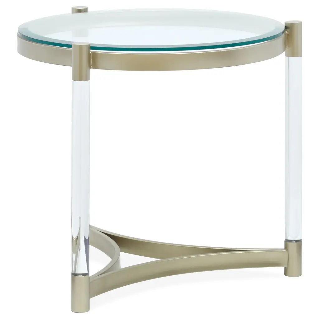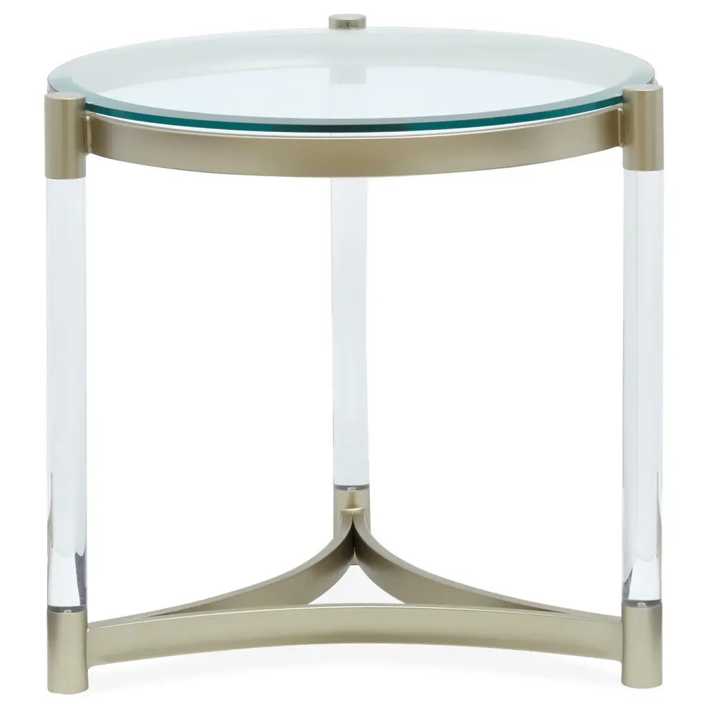 Transitional Round Glass End Table With Clear Acrylic Legs