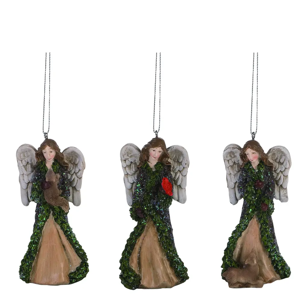 Transpac Resin Greenery Angel Ornament Set Of 3 Christmas Home Decorations - Plastic - Multi