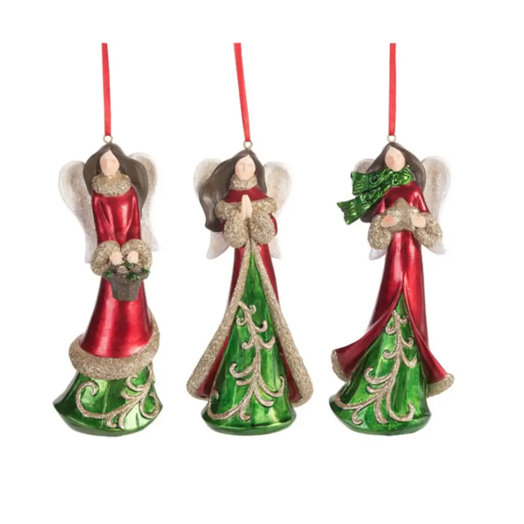 These elegant Angel decorations are the perfect way to bring the magic of Christmas into your home. Crafted with intricate details and vibrant holiday hues, they'll instantly elevate your seasonal decor and fill your space with a sense of joy and wonder. Whether displayed on your mantel, side table, or bookshelf, these angels will instantly catch the eye and get everyone in the holiday spirit. Plus, they make a thoughtful and unique gift that's sure to delight friends, family, and holiday hosts alike.