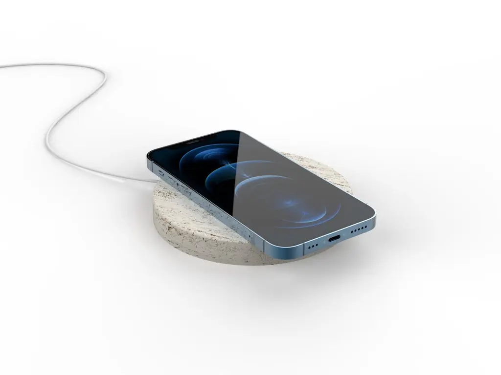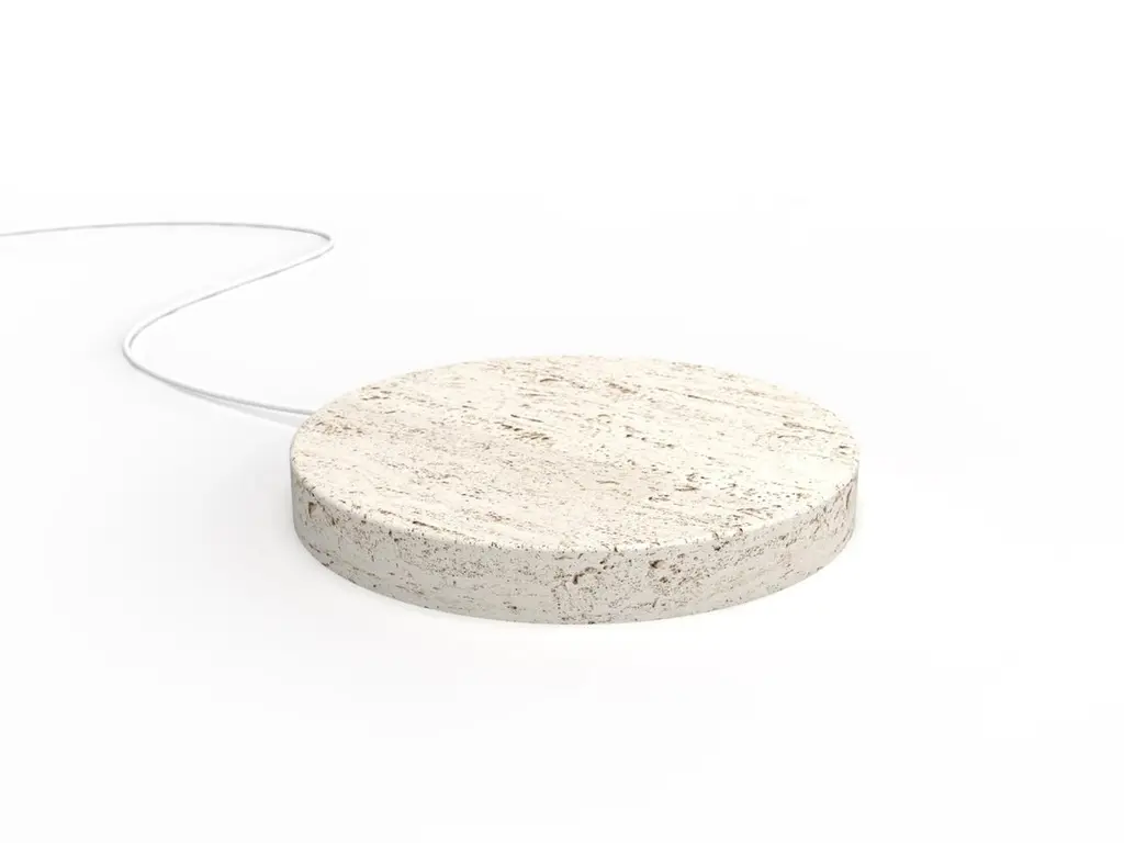 A travertine base,that quickly charge your phone, with a touch of magic. A circle,a stone,realized with the care that stone requires.A powerful wireless charging technology ensures an efficient and reliable power delivery.The result is a magical object, with a natural feel,a piece of art that wonderfully fits on any table or bedside table,or everywhere you imagine.Designed and manufactured in Italy,100% stone- 15w power supply included in the box.- Integrated cable: 90cm (3ft)- Base diameter: Ø 12cm (4,72in) Compatible with all Qi-enabled devices.iPhone 12 / 12 Pro / 12 Pro Max / 12 Mini / iPhone 11 / 11 Pro / XS / XS Max / XR / 8 / 8 Plus /Samsung Galaxy S20 / S10 / Galaxy S9 / S9 Plus etc...