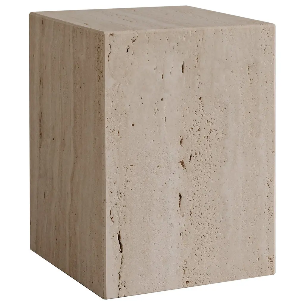 Travertine Marble Rectangular Tall Or Drink Side Table Tower Table Chiseled Edge