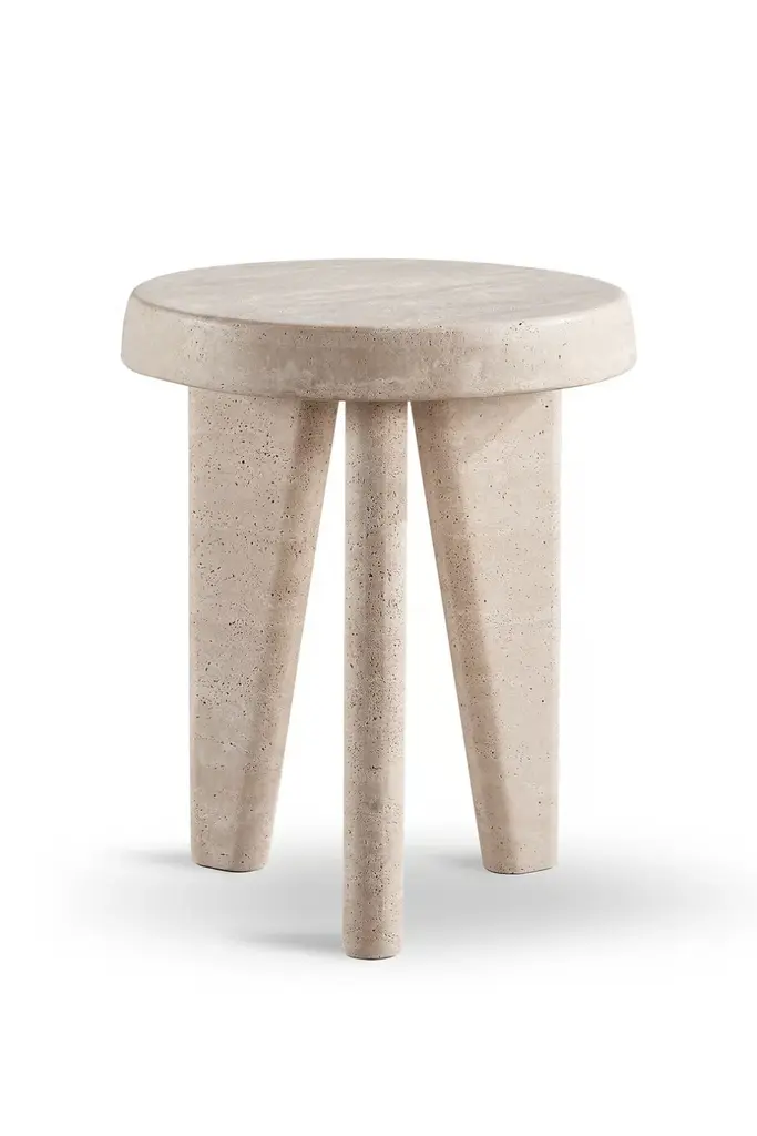 Our Lucca collection features dynamic angles, organic curves and a unique tripod construction. The Lucca Round Side Table is a conversation piece - handcrafted from a European natural travertine and supported by three angled legs and an aluminum substructure to reduce weight. Stone sealant preserves its unique character and makes this modern round side table a versatile piece for use indoors and out, perhaps next to seating or a sun lounge - but wherever you place it, it will be a statement.