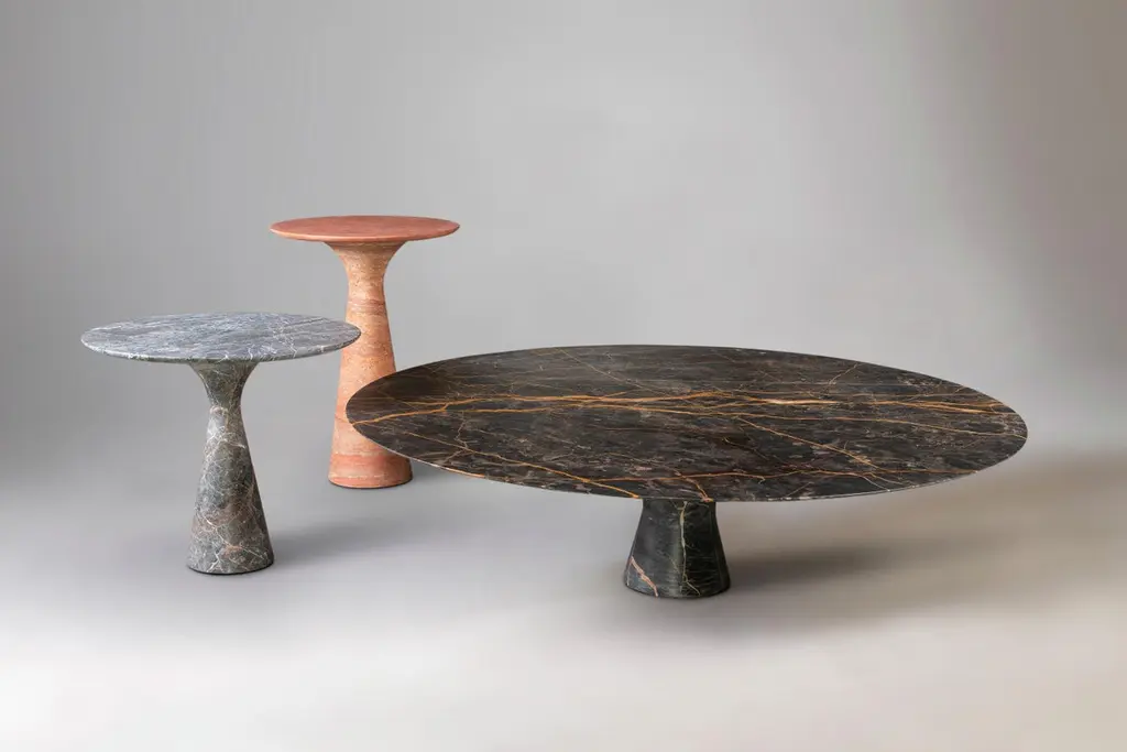 Travertino Silver Refined Contemporary Marble Side Table 62/45Dimensions: Diameter 45 x height 62 cmMaterials: Travertino SilverAngelo is the essence of a round table in natural stone, a sculptural shape in robust material with elegant lines and refined finishes.The collection consists of a round/oval dining or conference table, side tables and lower tables.Suitable for both indoor and outdoor use!All tables are made by order and finished by hand to be sure that the tabletop and base become one pieceThe basic collection consists of 9 different marbles and different standard dimensions, however on request we make to measure.Almost any size or marble is possible!All tables are signed and numbered (the low and side tables are only signed).All tables are impregnated with Lithofin Nanotop. This protection is not visible and the marble keeps its natural look and feel. With the delivery of every table, a maintenance set of Lithofin is included.The production time is standard 12 weeks.The design Angelo is the essence of a round or oval table in natural stone, it features a sculptural form, sturdy material, an elegant line and a refined finish. Two elements, table base and top, form one whole together. The bottom is one running curve from table foot to edge. The conical connection creates a stabile whole.To show the marble in it’s most expressive character, different finishes are possible (polished, honed, brushed, striped, sandblasted & brushed). The basic collection consists of nine different types of marble and different sizes. On request this design can be executed in almost any type of marble and on measure. This table is perfectly suitable in a housing, retail or office environment. As the table is supported by one central foot it creates a lot of flexibility in seating. Executed in hard variations of natural stone suited for external use, this design can be a perfect garden table or sculpture.Angelo M/R 130 : ø 130 x 75 cmAngelo M/R 160 : ø 160 x 75 cmAngelo M/R 180 : ø 180 x 75 cmAngelo M/O 210 : 210 x 135 x 75 cmAngelo M/O 250 : 250 x 160 x 75 cmAngelo M/O 290 : 290 x 160 x 75 cm The basic collection is available in the following marbles: Kyknos, Grafite, Travertino Rosso, grey saint Laurent, Picasso green, port saint Laurent, Travertino silver, Rosso Lepanto and Bianco Statuarietto in a honed finish. On request different sizes, finishes and marbles are possible. AwardsGood Design Award – Chicago, USA (2018)People’s Choice, AZ Award – Toronto, Canada (2019)German Design Award – Frankfurt, Germany (2020).