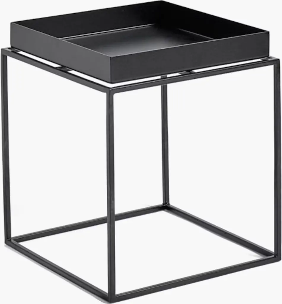 Made of powder-coated steel, the Tray Side Table (2010) is a multifunctional piece of furniture with a tray top that lifts easily off its base, sporting high edges for keeping objects securely in place. The slim and simple base complements a variety of interiors. Tray is not food safe. Made in China.