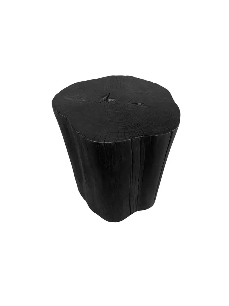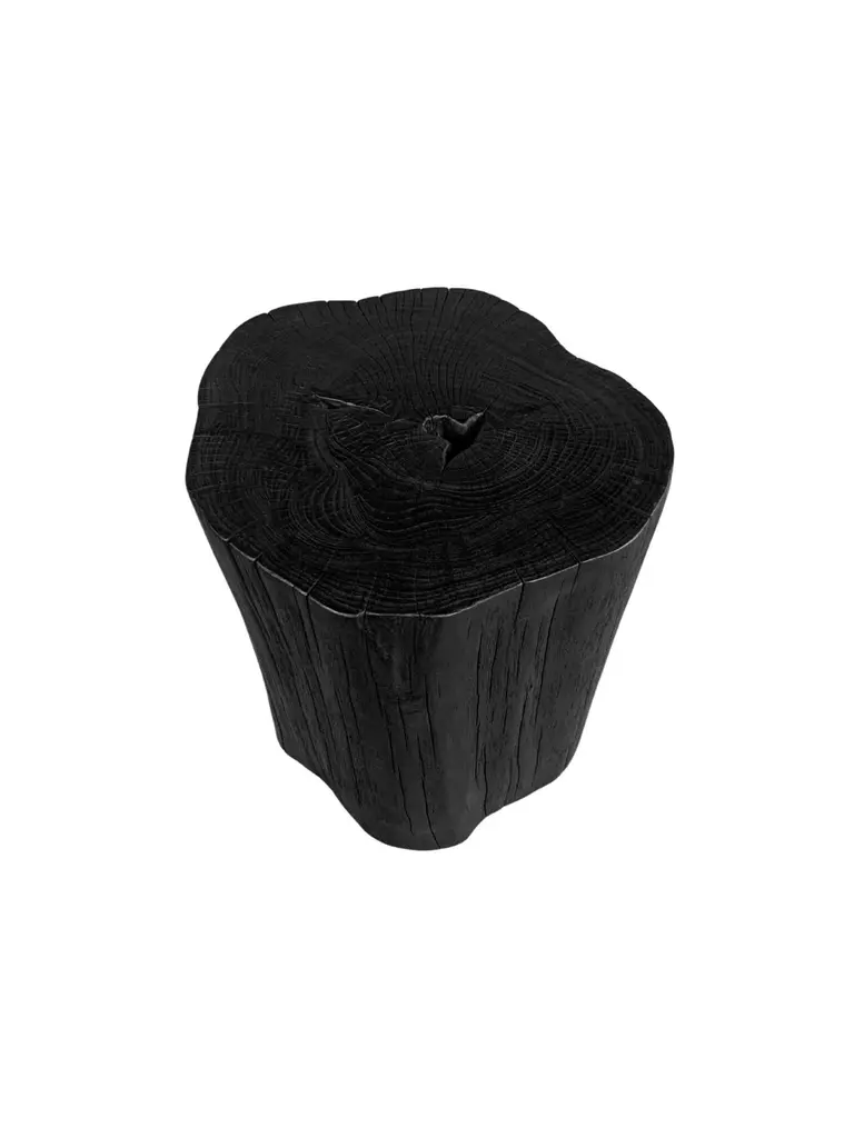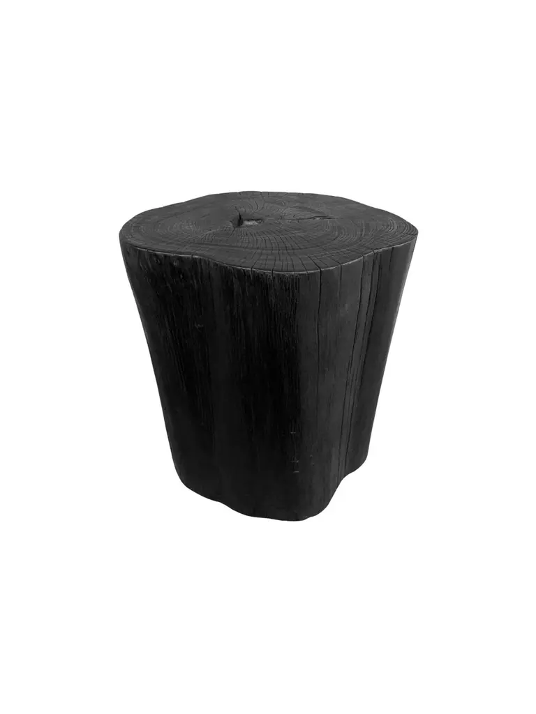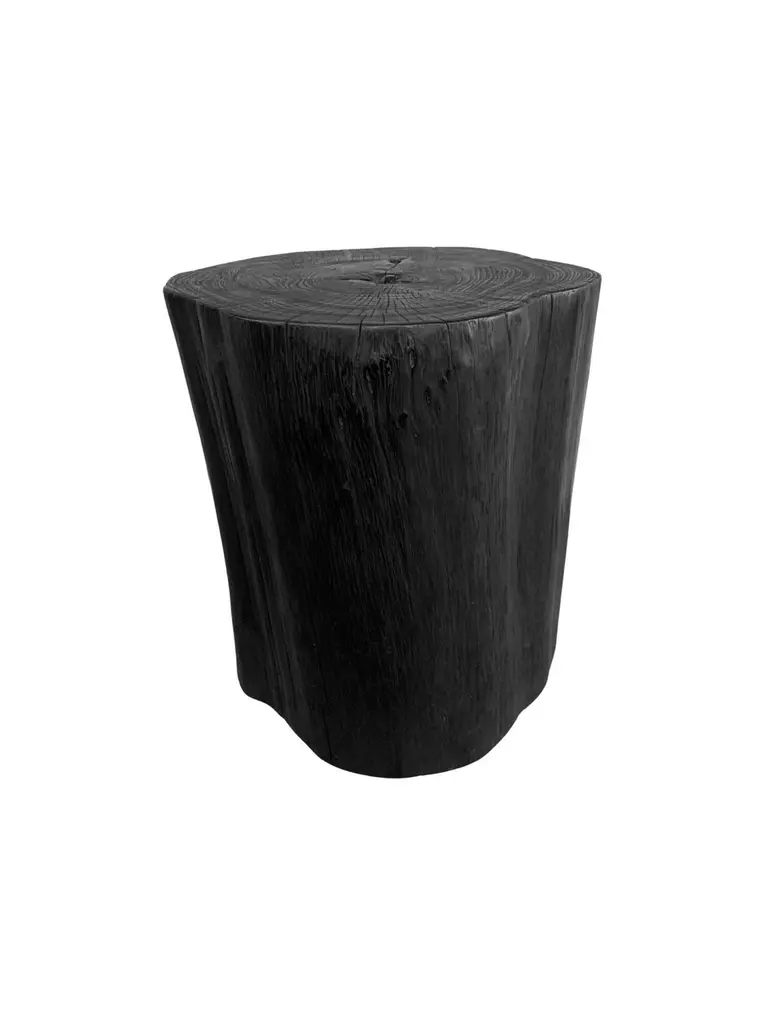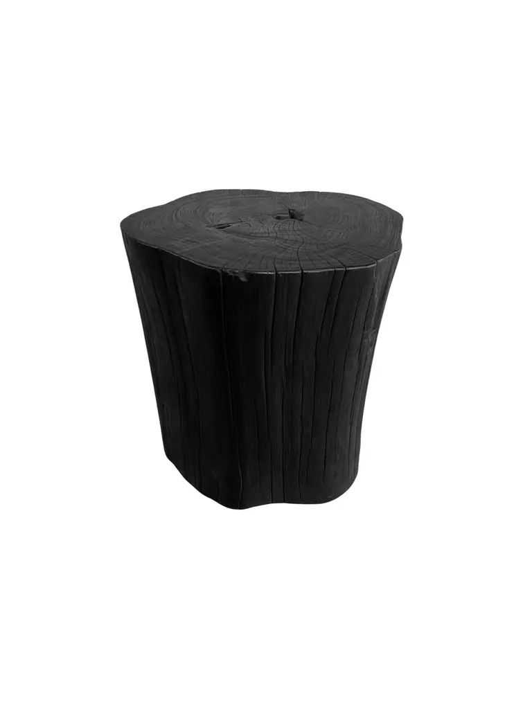 Tree Trunk Side Table Solid Teak Wood Burnt Finish Modern Organic