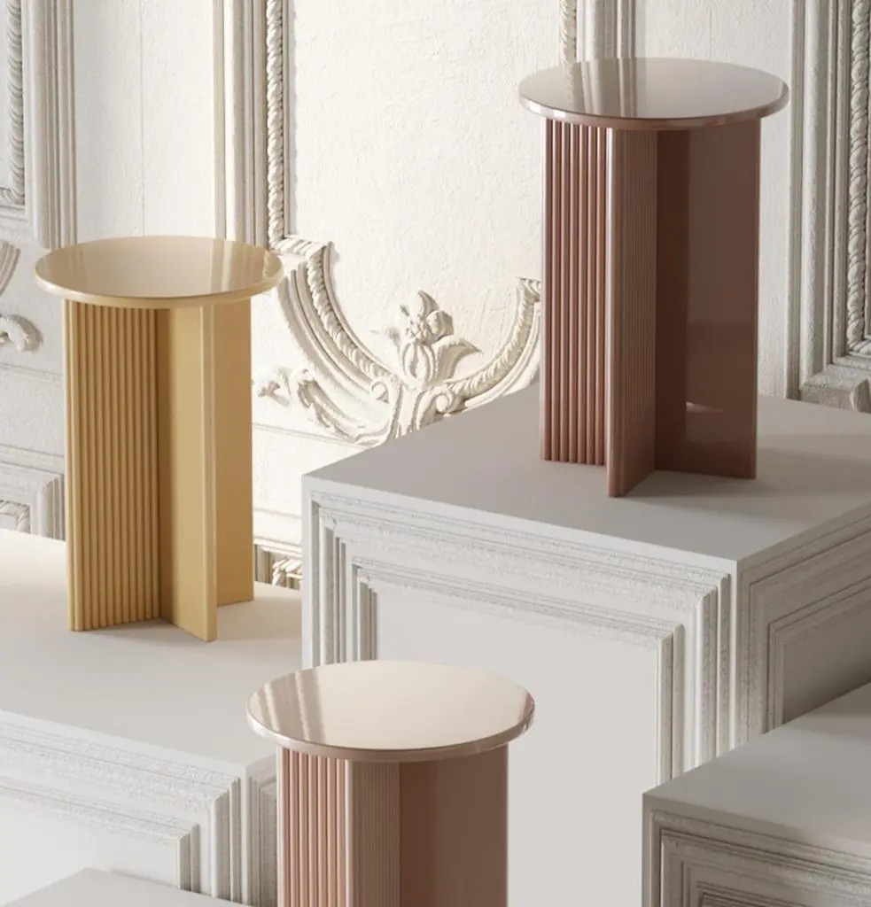 Tri coffee table easily adapts to many places and styles with its simple and sympathetic geometry. Its natural look and noble lines will complete your home.We apply high gloss acrylic lacquer on our glossy coffee tables. Glossy lacquer and varnish finishes are produced with special techniques and they are the most durable lacquers on the market. Turned solid wood is used on its legs. Despite this, the use of glossy lacquer is always sensitive, open to chemical reactions and scratches. Especially heavy cleaning materials cause the coffee table surface to fluctuate and become dull. It has been observed that some nail polishes and acetones and disinfectants can cause permanent damage. It is recommended to clean with a damp, clean soft cloth.