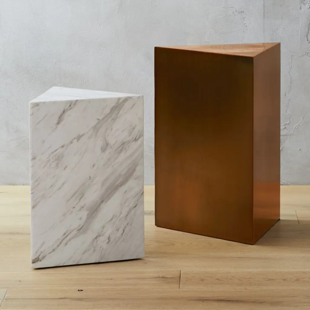 Triangle takes shape as a stunning side table. Designed by VUUE, in tandem with its bronze counterpart, warm beauty rocks a simple, solid form. Position them together—"the visual weight of one balances the other—" or opt for solo showing. Learn about VUUE on our blog.