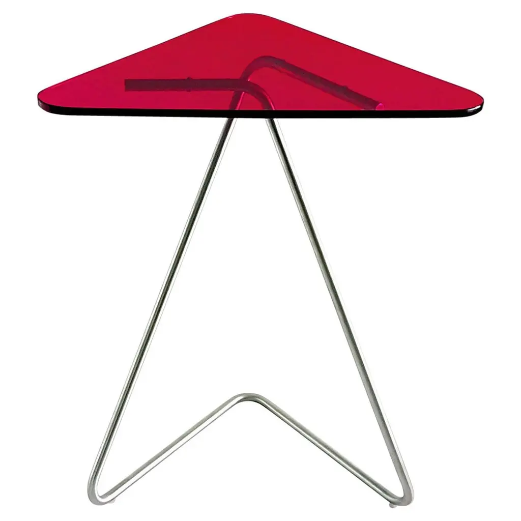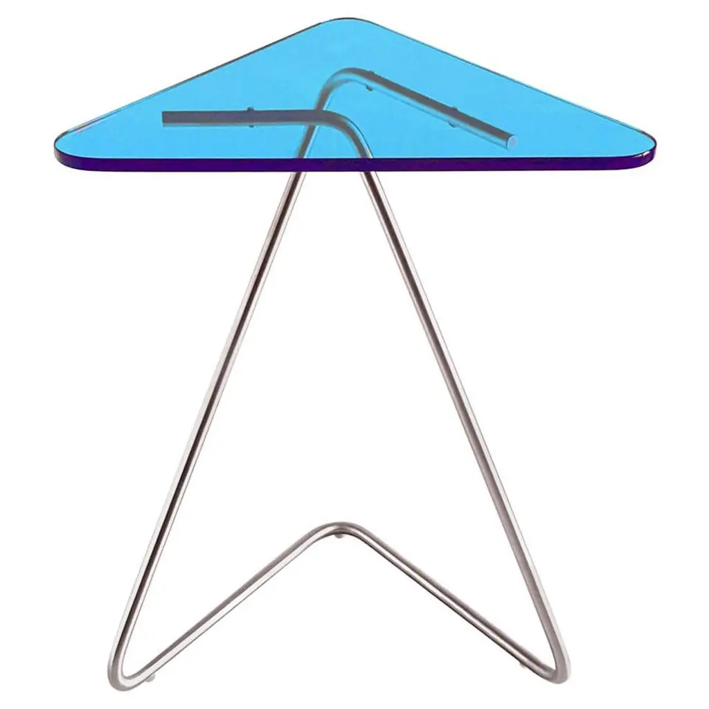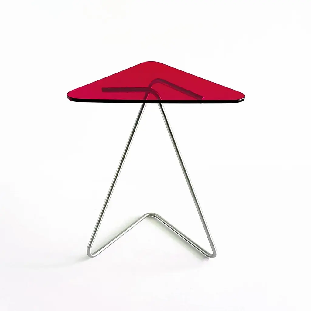 The triangle side table by Rita KettanehDimensions: The base: brushed stainless steel plated with copperoptionally plated with copper or brassThe top: AcrylicMaterials: H 49.5 x W 41 x D 9.5 cmWeight: 2.6 KgColors and finishes:Stainless finish: Burnt orange, maya blue, cherry red, navyCopper finish: Light pink, brownBrass finish: Mint green.The crystal tables are proudly produced in Lebanon by combining top notch Industrial methodswith authentic craftsmanship. The result is high quality products that capture the delicateness ofthe human touchThe triangle is one of the side tables in the award-winning Crystal Tables Collection designed by RitaKettaneh. Inspired by the crystal's transparency, purity, and geometry, The Triangle has a geometric identity which influences its entire shape and various silhouettes.Rita Kettaneh designs furniture that is unique, playful and meaningful. She seeks to make the experience of owning furniture an inspiring one where pieces evoke an emotion within their users. With an engineeringfoundation, an entrepreneurial specialisation, and experience in marketing and design, she brings in amultitude of perspectives when designing her products. Rita won the A’ Design Award for The Crystal Tables and has participated in exhibitions in Como, Beirut, Dubai, and Berlin.KRAY Studio is an emerging furniture brand that seeks to make the experience of owning furniture more meaningful and beautiful. Our vision is for you to connect with the pieces of furniture so your home starts resonating with you and becomes a space of discovery and restored vitality. We introduce a new kind of luxury, that is socially aware, spatially smart, all the while being fresh and contemporary. Designed by Rita Kettaneh, our high end pieces are produced by collaborating with local fabricators and craftsmen to preserve the authenticity of the Craft and the delicateness of the human touch..