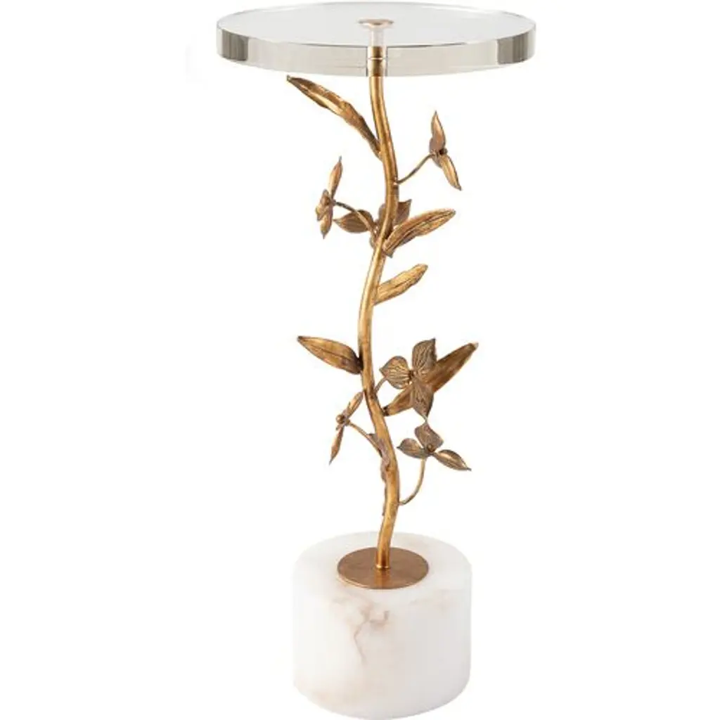 Trillium Martini Side Table, Alabaster/antique Gold Leaf