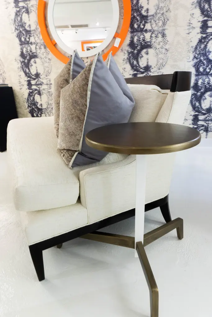 This faux copper lacquer table is conveniently designed to fit in any room. The long protruding leg slides under tables and benches to maximize your space. Measurements:Overall: 14.5”W x 17”D x 26”HPrice As Shown: $1,680 eachCustomization may change the price.How We Work:Made to order by Connecticut-based furniture design and manufacturing company The Tailored Home. Submit your customization desires by 1stdibs messenger for a quote. After orders are placed our workshop manager creates a visual work order for your approval for quality assurance.Customization Options:Dimensions can be customized. Ask for details.The fabric shown may come in more colors. We also carry thousands of other materials and can send you samples and fabric pricing upon request. We accept your fabric for a COM fee of 5% of the cost of the piece. Welting, piping, tape, or trim can be added. Different species are available for pieces with exposed wood and can be painted & lacquered in any Benjamin Moore color (for an additional charge) or stained in one of our stain options. Custom color matches cost $75 per sample.We accept inspiration photos of pieces you like.2021 - Made to Order9-10 weeks