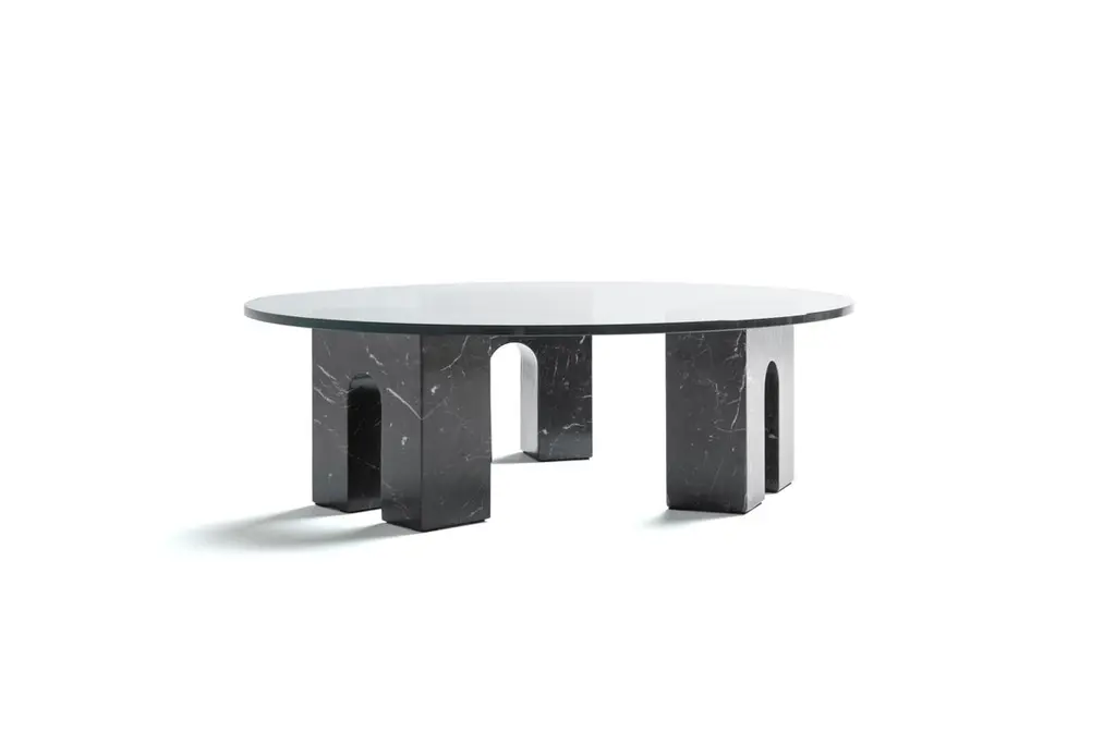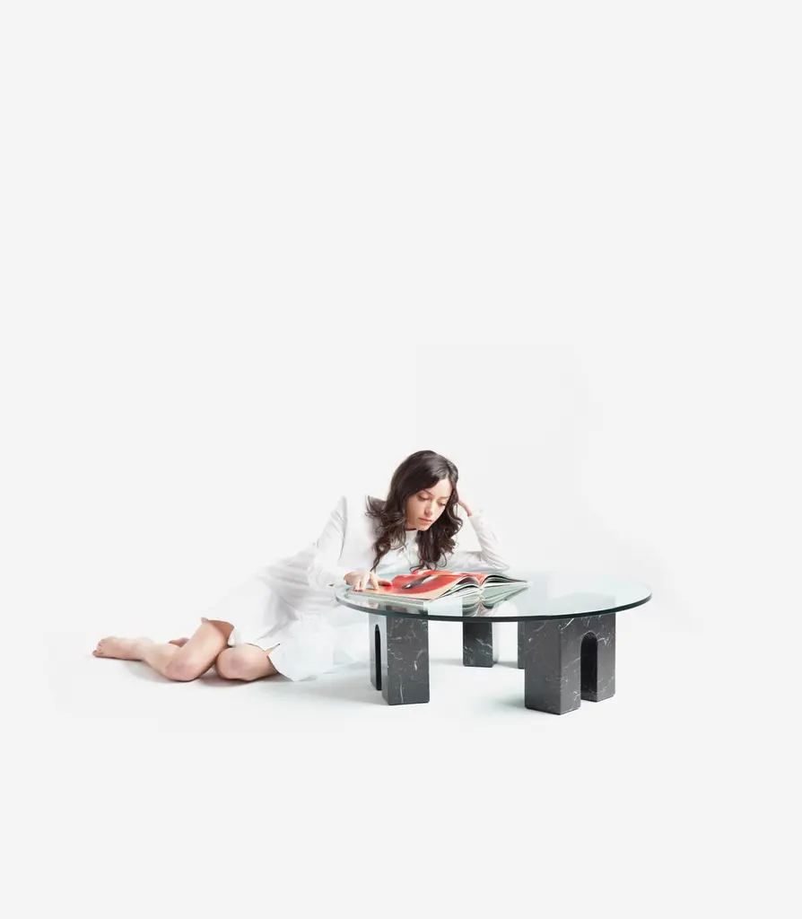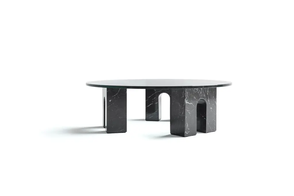 Triumph Marquina marble table by Joseph Vila CapdevilaMaterials: Marquina marble, tempered glassDimensions: ø 94 x 29.5 cmWeight: 21 kgLuxurious mirror in two separated parts: the base, made with premium Carrara marble, and mirror, that can be placed on the vertical or horizontal way, and has a gold polished metal blade on the back. Aparentment is a space for creation and innovation, experimenting with materials with the goal to develop robust, lasting and timeless designs.Aparentment collections feature contemporary and casual sophistication. Parts made of noble materials such as Carrara marble, wood and brass play with the concepts of style and uniqueness.Josep Vila captures in his collections the creative discourse that motivates him as a professional. On the one hand, printing his aesthetic character in accessible designs with an artistic touch, playing with the metaphor & contradictions (like a Brique made of marble), transgress without losing the sophistication and looking for the opportunity to offer something different, working from design to production with local craftsmen and manufacturers.Josep Vila Capdevila is the founder and Head Designer of Aparentment, he graduates in industrial design by Elisava University in 2001. He postgraduates in Photography in Elisava and 3D Design Engineering at UPC. His multiple interests lead him to get involved with advertising, fashion, photojournalism and even music.In addition to his work under Aparentment, he was a teacher of Industrial Design at “Escola d’Art i Disseny de Terrassa” and won a LUX bronze award for ‘Best advertising photograph’.