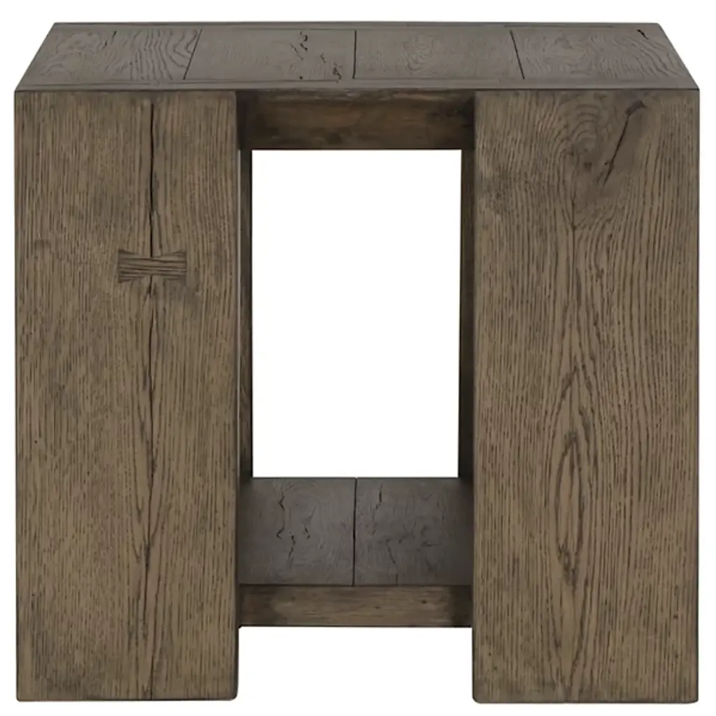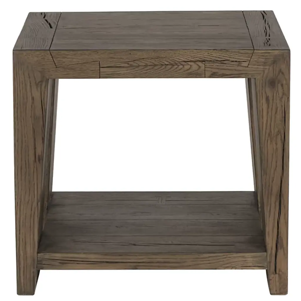 The Troy End Table from Classic Home blends simplicity with refined details, featuring oversized dovetail joinery and tapered legs that add subtle sophistication to its design. Crafted from cracked oak, its dynamic grain pattern is beautifully highlighted by an antique brown finish, bringing warmth and character to any space. A lower shelf provides additional display or storage space, enhancing its functionality. Perfect for a variety of decor styles, this table offers timeless charm and practical elegance.