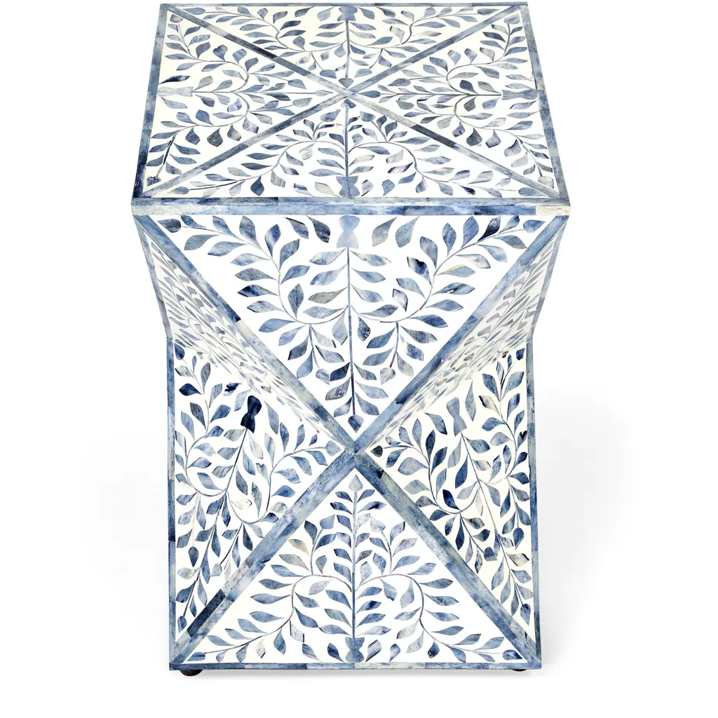 Butler Specialty Company Trubadur Bone Inlay Side Table, Sky Blue and White