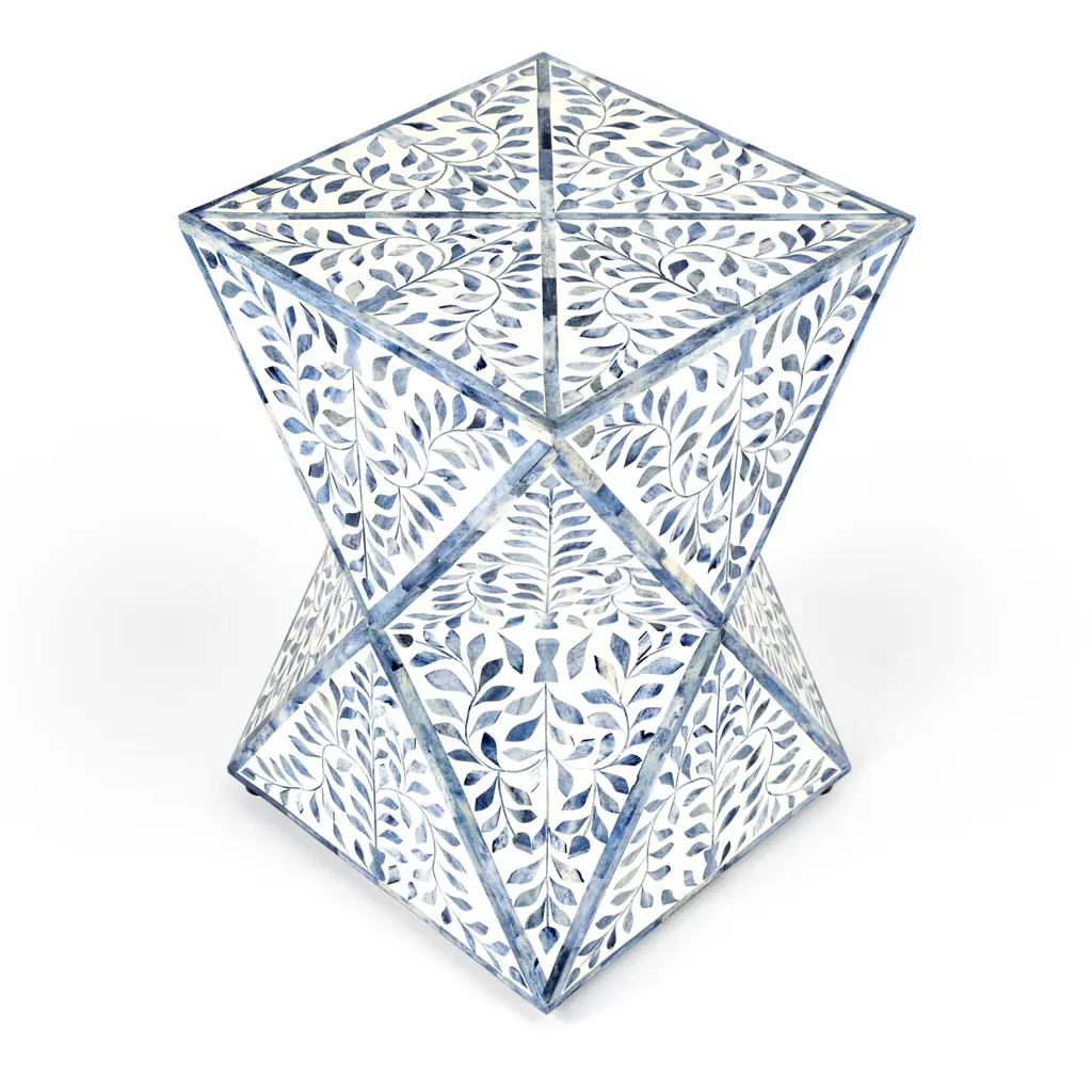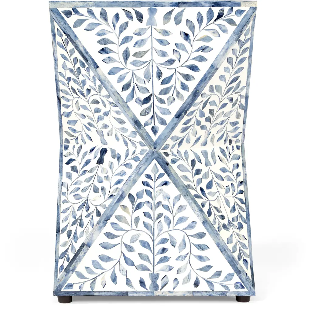 Trubadur Bone Inlay Side Table In Sky Blue And White