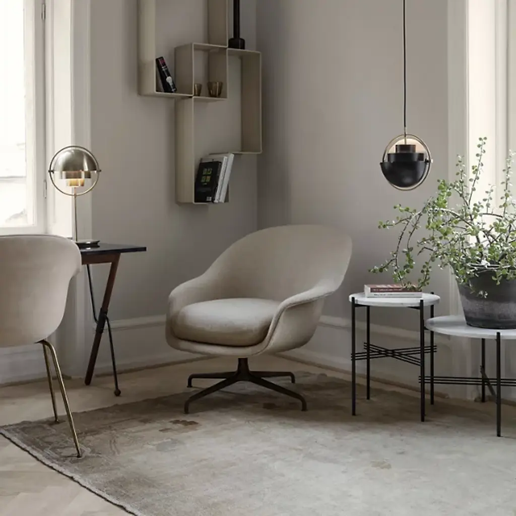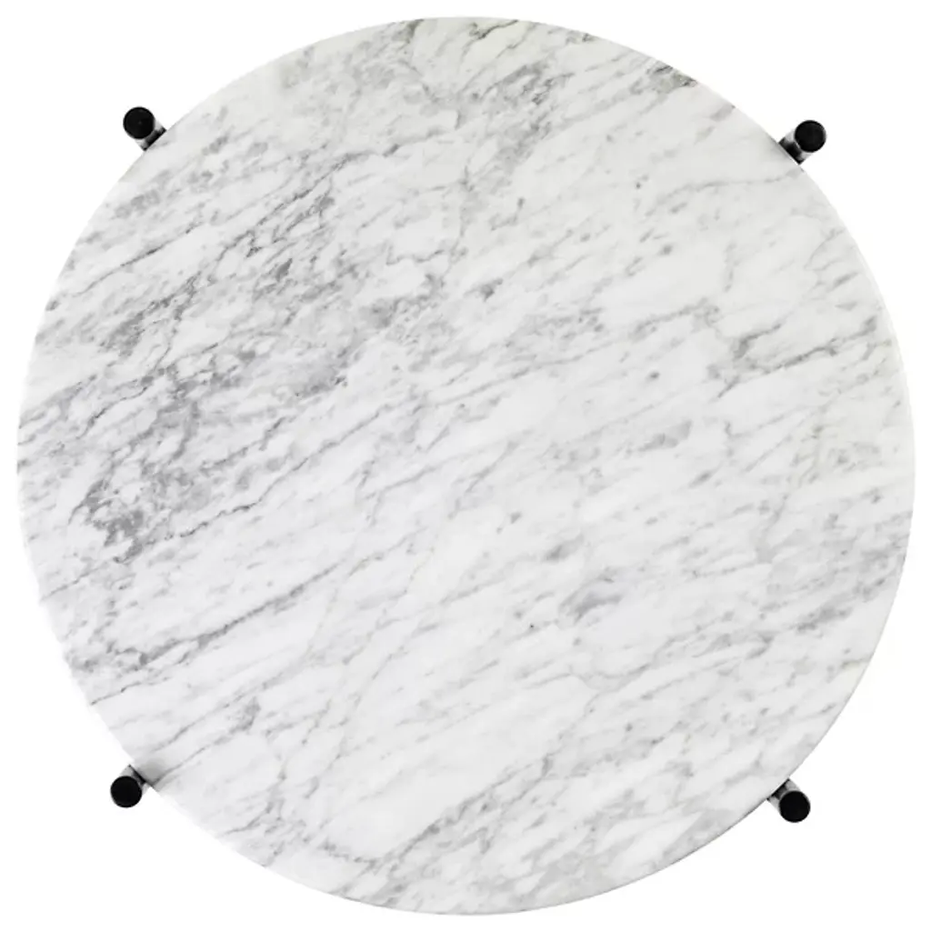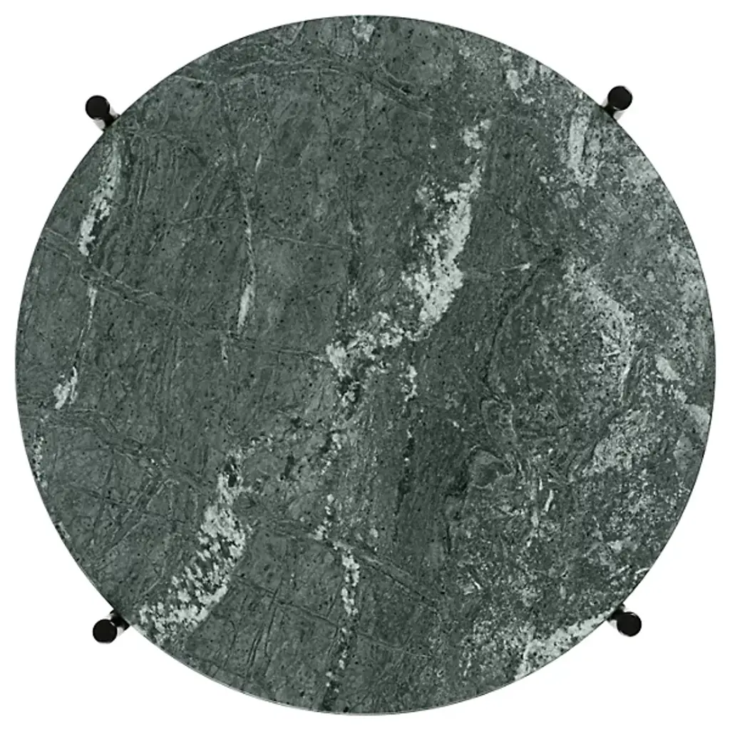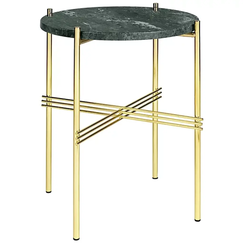 The TS Round Side Table sculptural form is highlighted by delicate crossing details on the metal base, while its solid marble top provides a grounding contrast. TS takes its name from The Standard in Copenhagen; the table collection was designed by GamFratesi specially for the restaurant. TS Tables function beautifully on their own or can be layered in varying heights and material colors. Perfect for a living room or finished basement space, the TS Table adds a dynamic look to any space it inhabits.