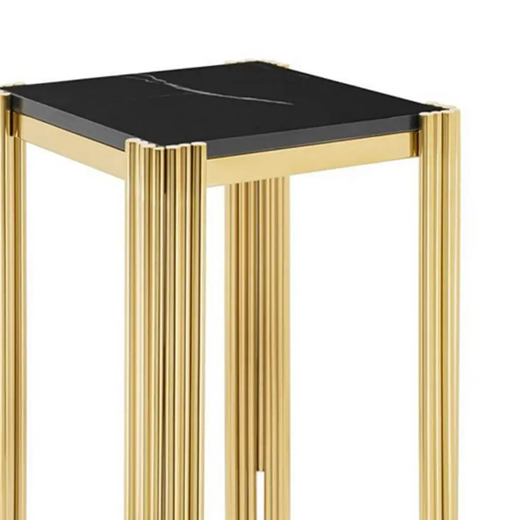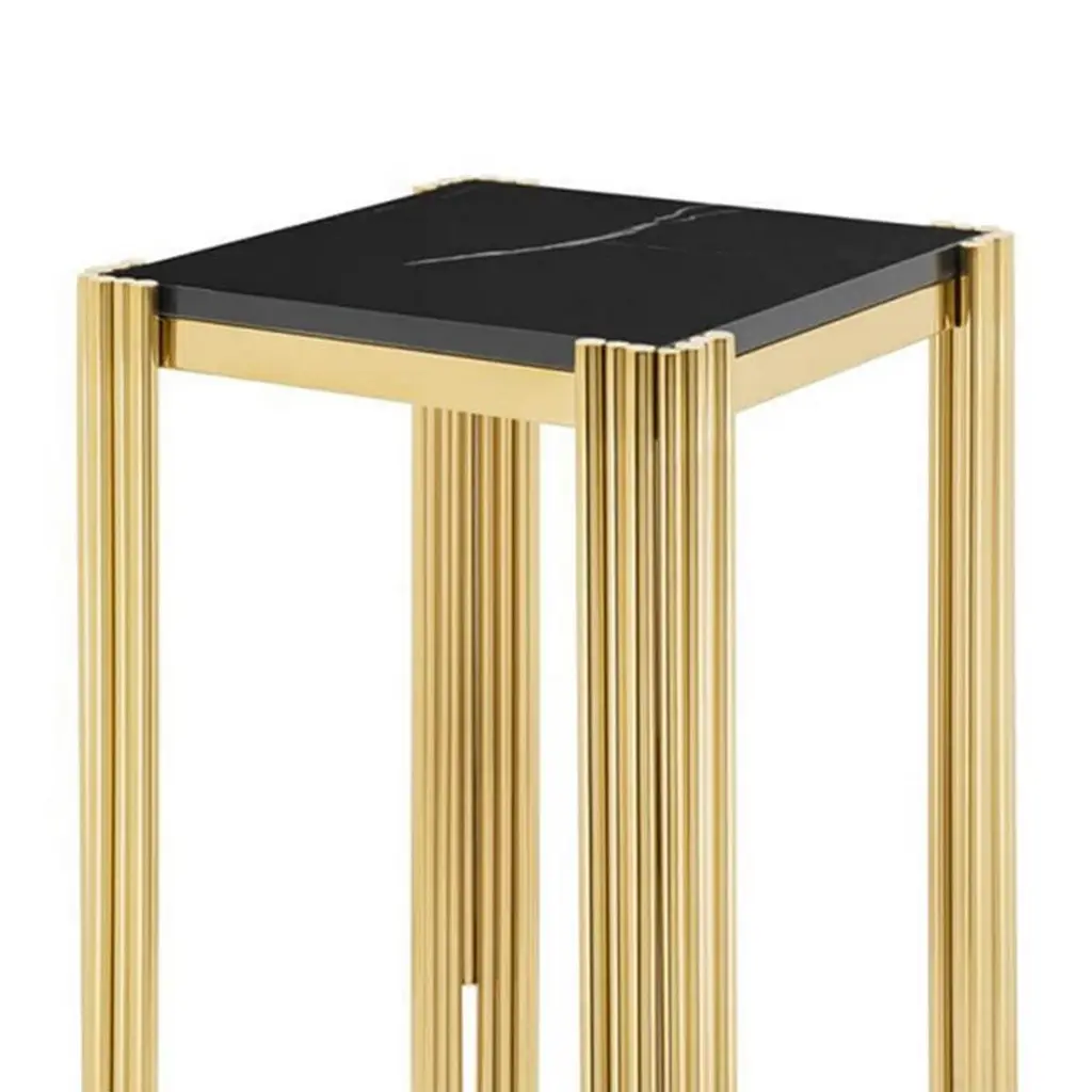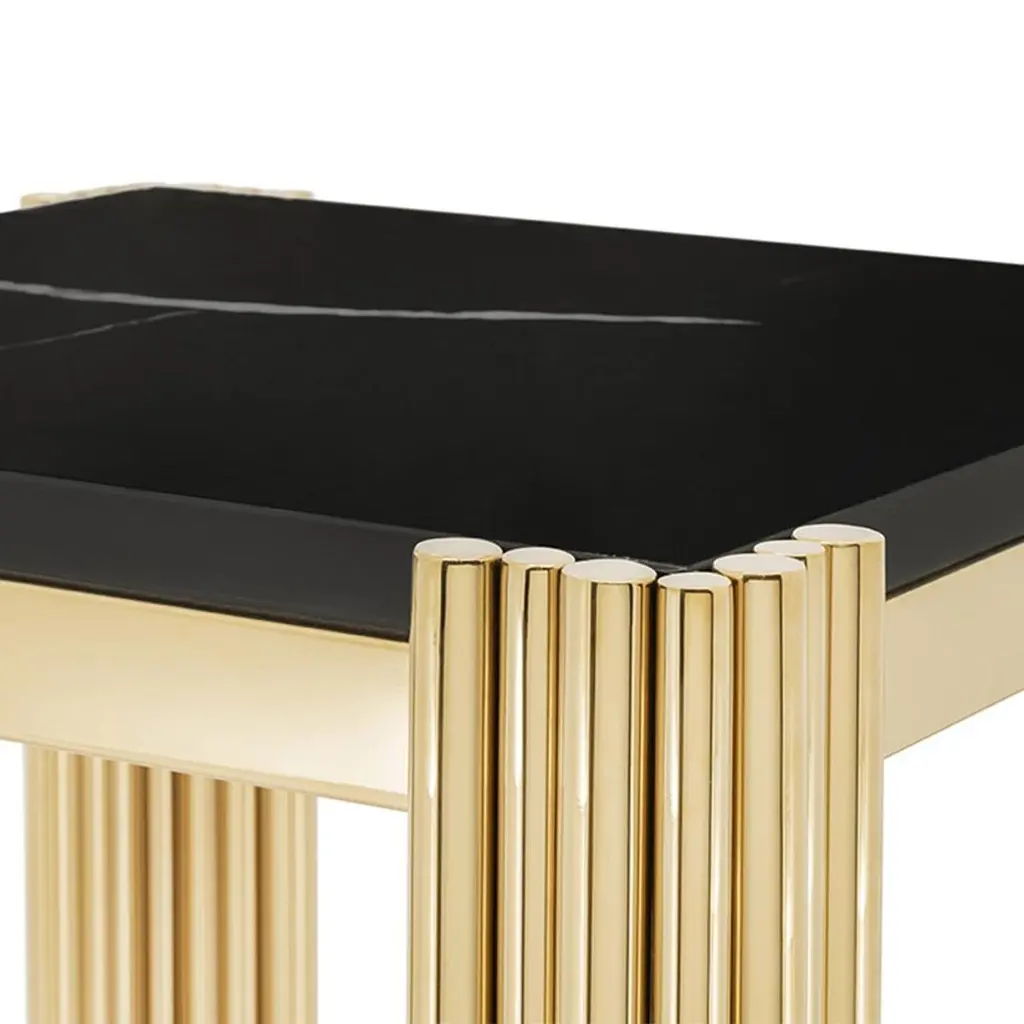 Side table tubes II high with structure insteel in gold finish and with black marble top.