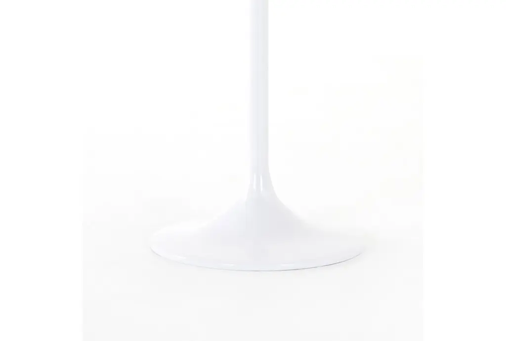 This modern Tulip Side Table in White Aluminum is a stunning addition to any home decor. Its sleek white color and metal material create a tasteful and elegant look.