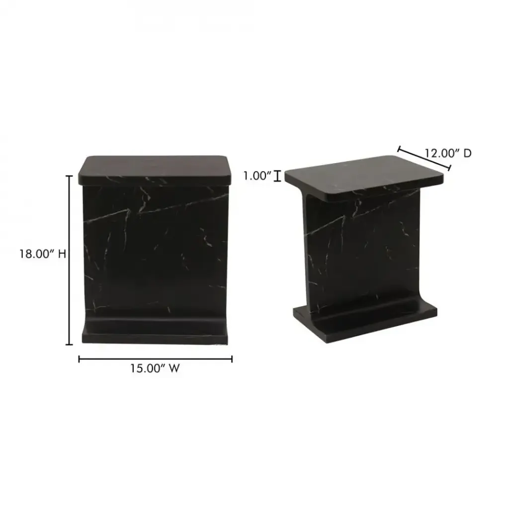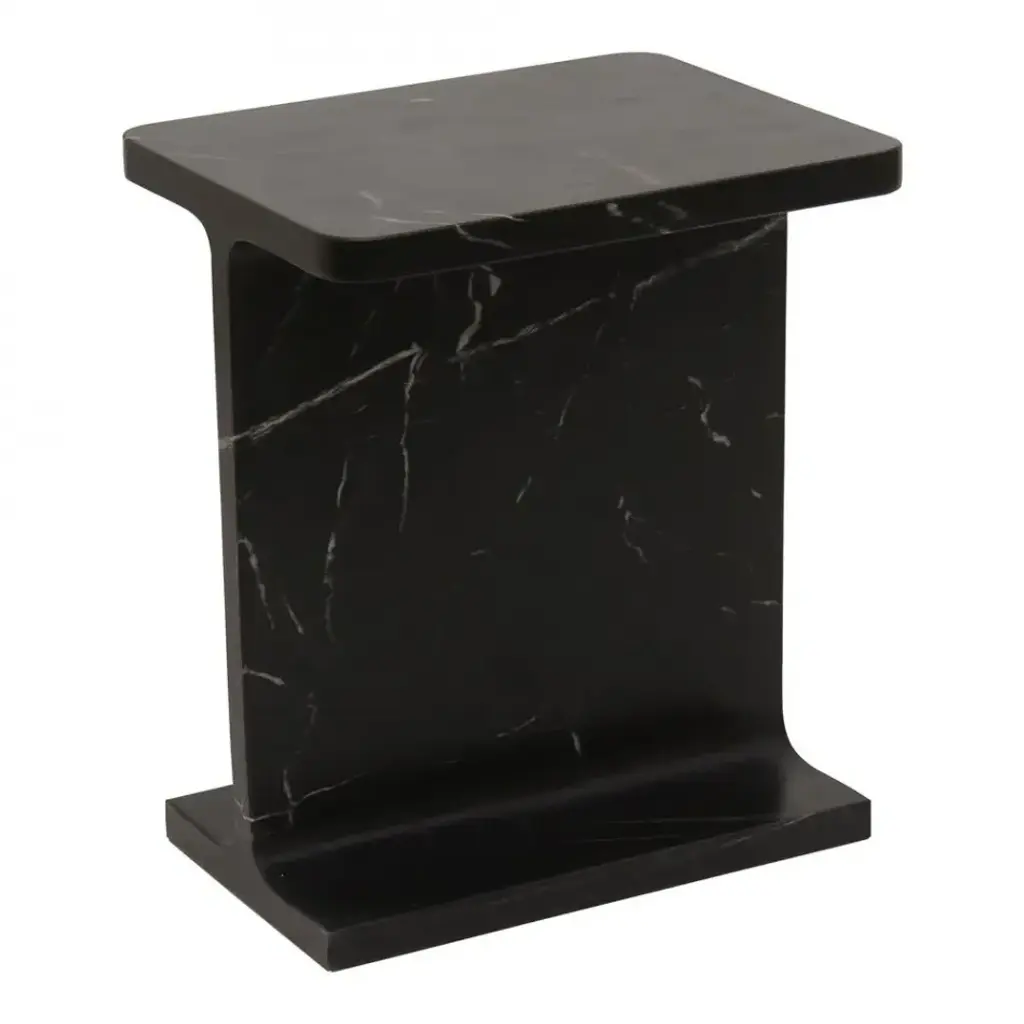The Tullia accent table blends modern architecture and luxury. Black marble and I-beam form is an intersection of design and practicality, versatile in its functionality. A perfect blend of stylish flair and elegance, the Tullia Accent Table adds a timeless touch to any space.