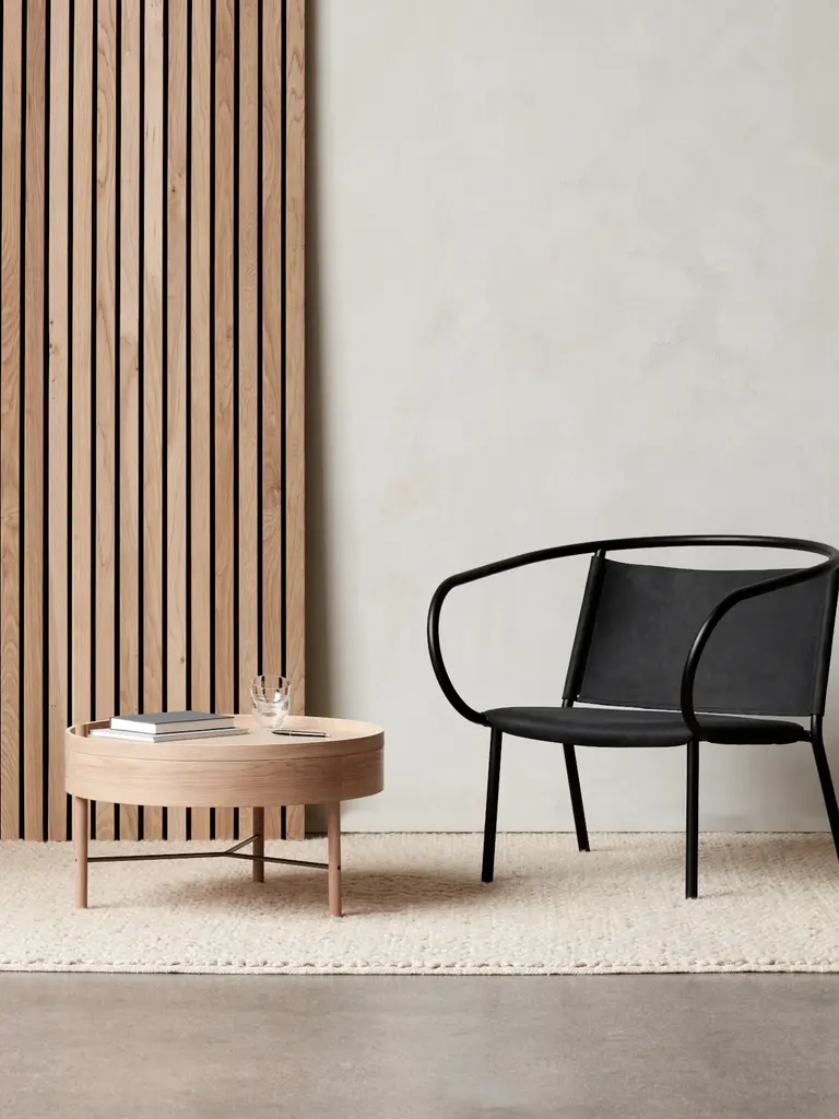 German designer Theresa Rand set out to design a simple side table with built-in storage space for magazines, remotes, extra chargers, gum and chocolate, or whatever you need at hand in the living room. The design is elegant, distinct, and very welcoming. You’re drawn to see and feel how it works when you’re near it. Theresa Rand explains, I was looking for an unpretentious but elegant way to open the storage container under the top plate and got the idea to open the lid by rotating it around one of the legs. The metal sticks help stabilize the construction and complements the expression of the wooden table.” Due to its size and storage function Turning Table works great at home, by the couch in the living room or as a bedside table for books, magazines or tissues. It will also suit lobbies, relaxed meeting rooms, waiting areas, cafes or restaurants.