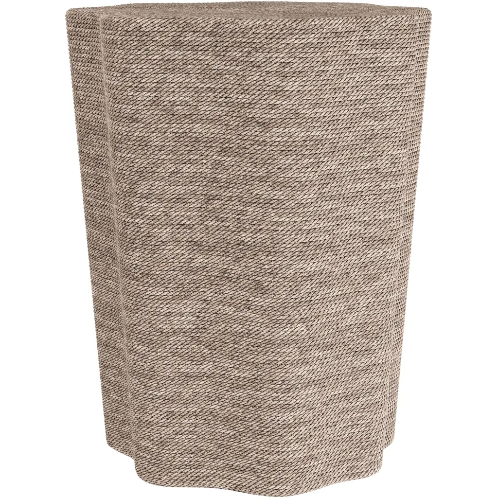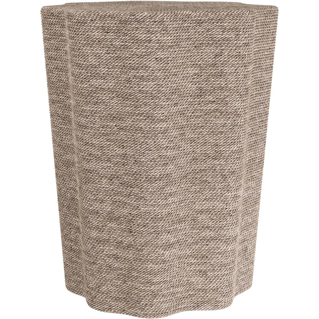 Our tuscon table bestows a layer of artisanal texture to a space. The natural beauty of bleached natural abaca is on full display, used to wrap the amorphous accent piece. The organic table can also be used as a stool. Finish will vary.