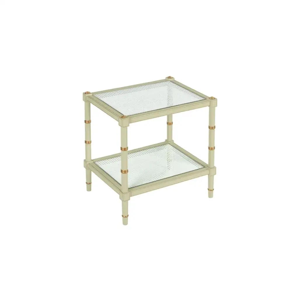 Stash your favorite novel, your iced tea, and/or your fruity frozen drink chairside. Durable powder-coated aluminum frame, with tempered glass top. Shelf made from woven aluminum cross-hatch strips beneath tempered glass.