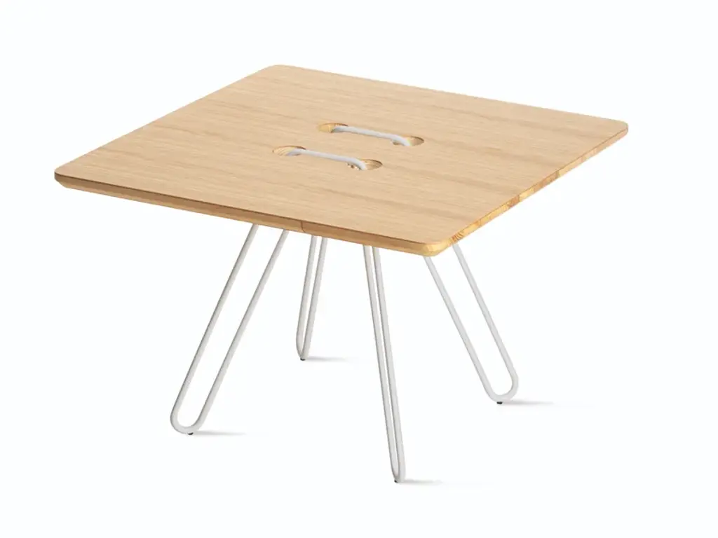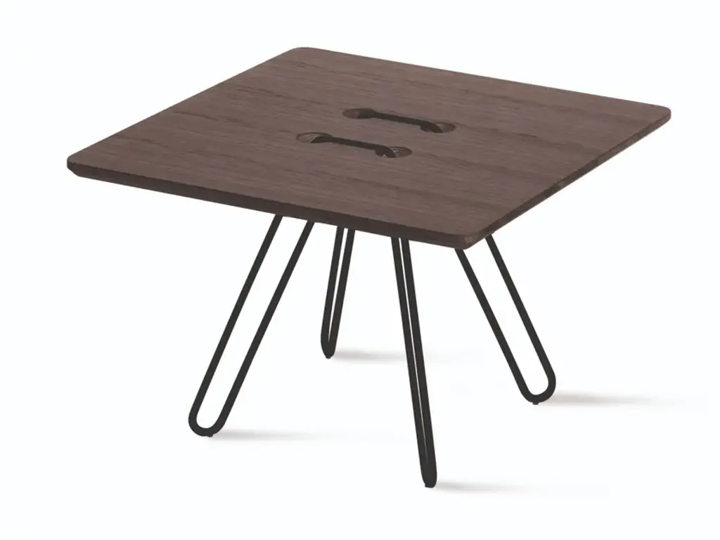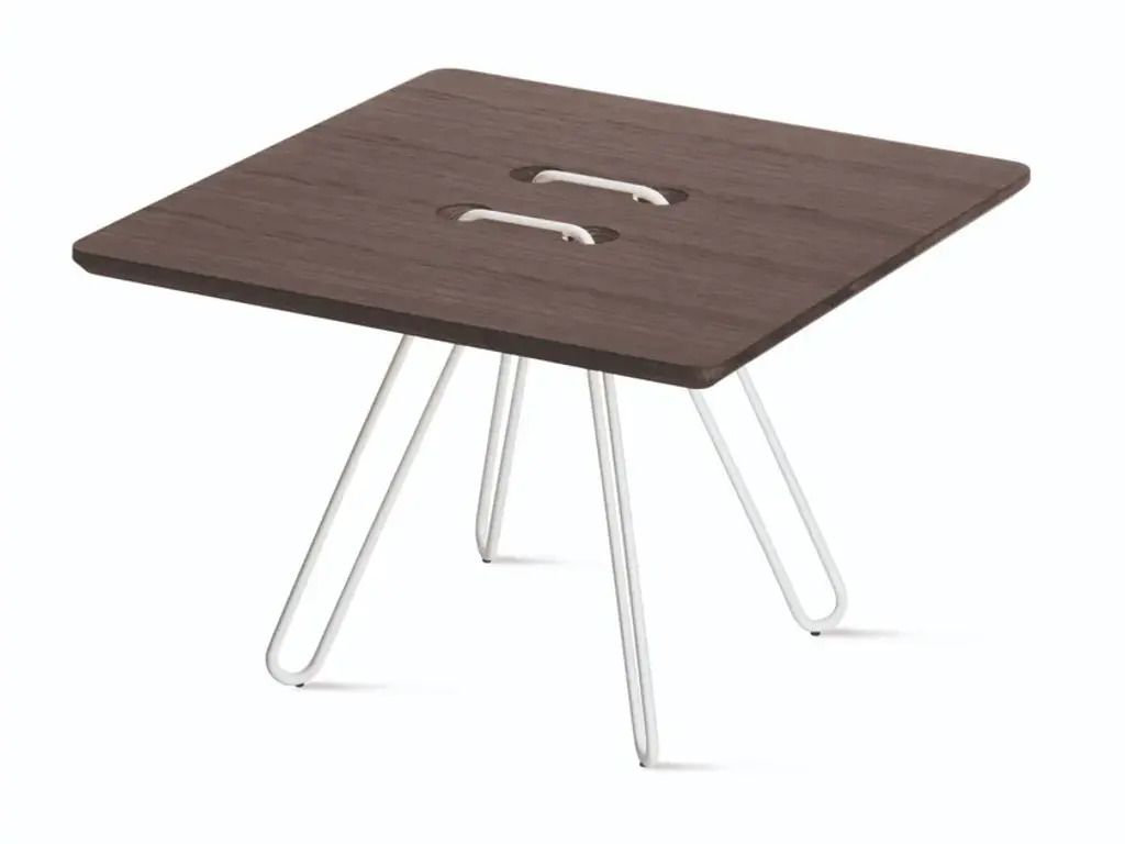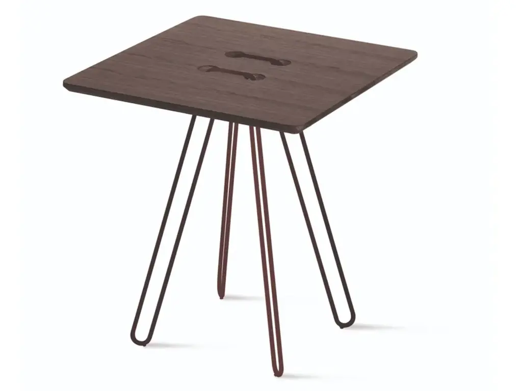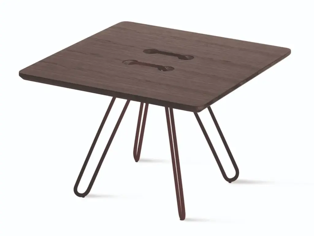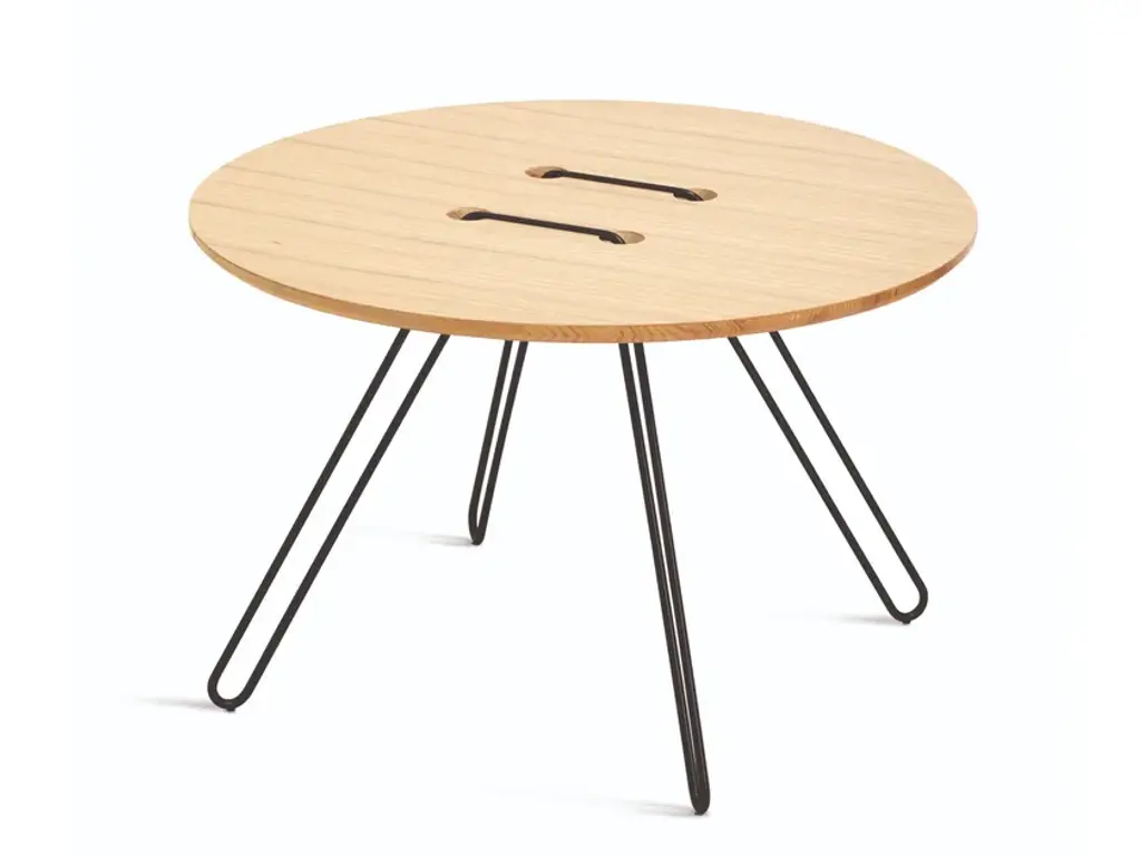 Twine Table is a series of tables inspired by one of mankind’s most simple inventions: the button. The table top is an over-size button, whilst the metal wire pierces and twists around the surface to create an elegant base. A playful and nostalgic addition to any interior. Available in a range of colours. “The idea of the tables arose when the designers, Lisa and Anna, were looking into the world of construction. They had recently been working with some embroidery for an exhibition, and they asked themselves – is it possible to stitch a table together? Inspired by the idea of needlework, they passed a metal wire through a table top. The wire then became the legs as well as the structure. The playful Twine Tables, in the shape of a button, are completely at ease by a sofa, an easy chair or just by itself”. MATERIALS AND FINISHESTop: White lacquered MDF or solid oak natural or walnut painted oak.Structure: black, white or bronze painted metal.