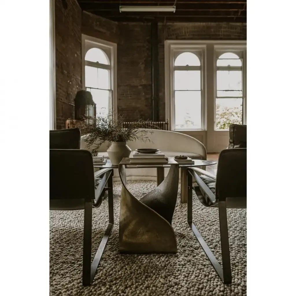 This twisted, two-tone accent table is cast in aluminum with a black, antique brass finish. Ideal as a stylish accent table, as an occasional stool, or a statement design for your botanical arrangements.