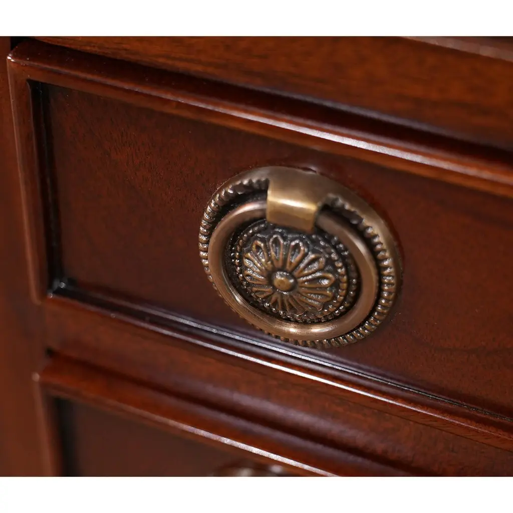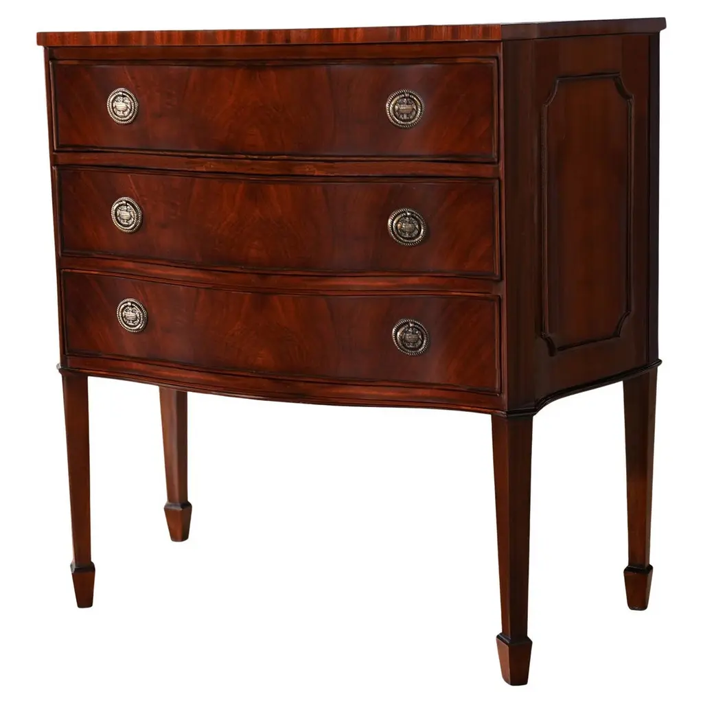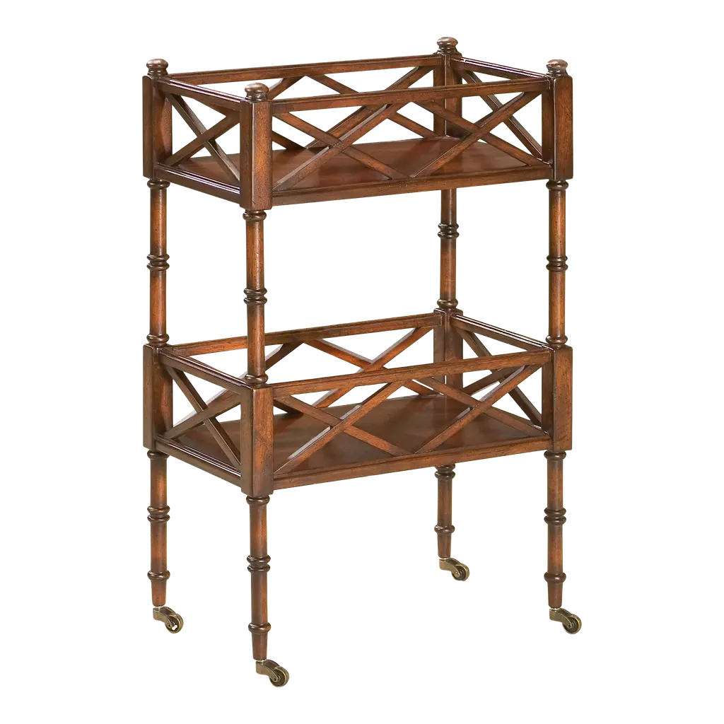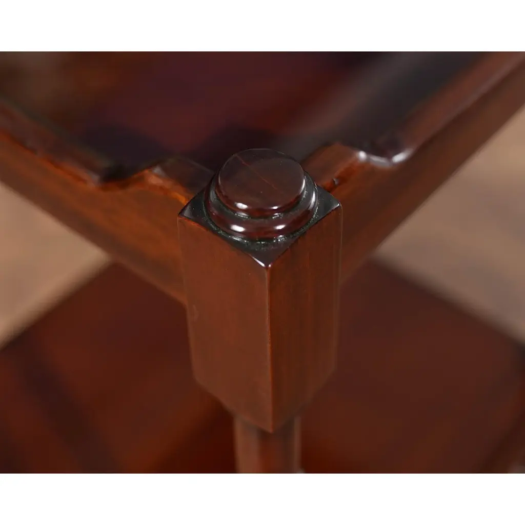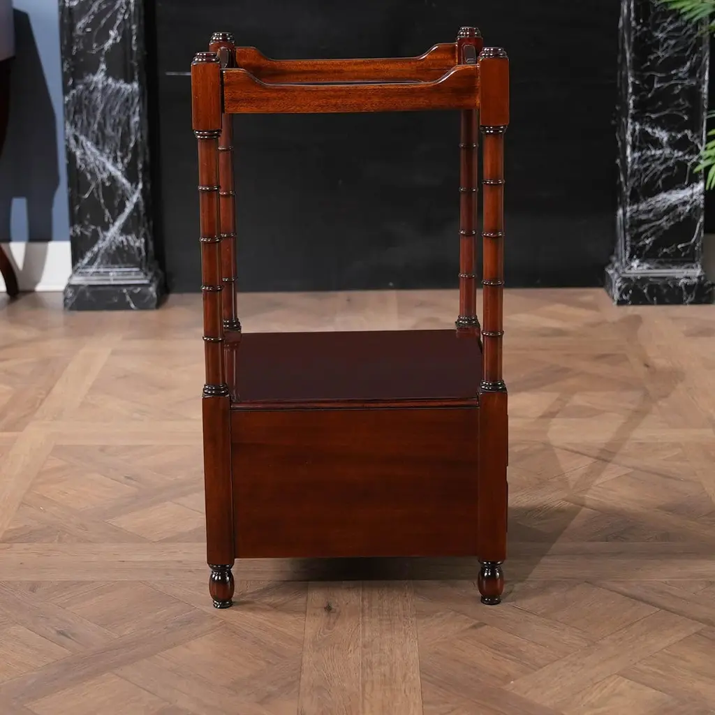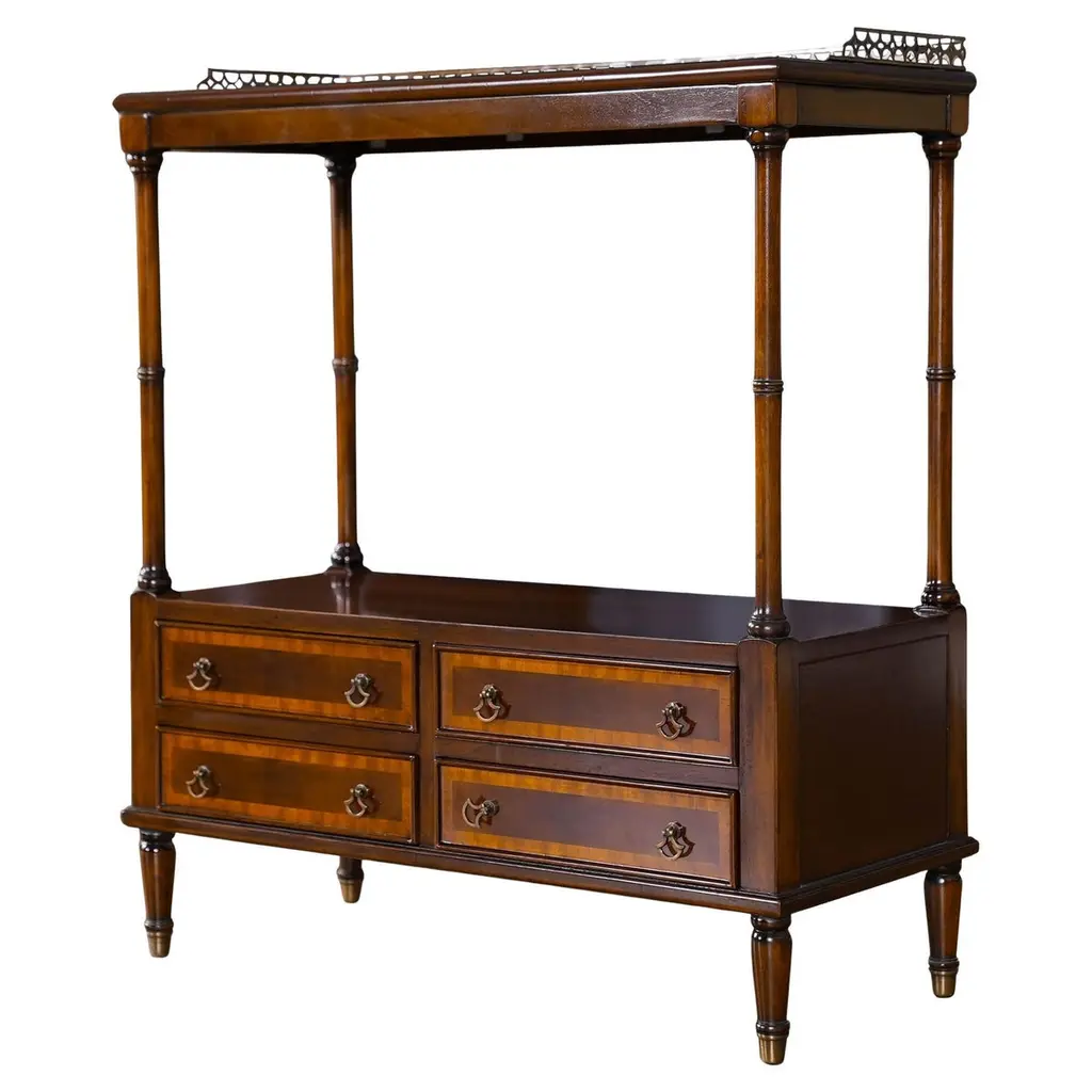 Popular for centuries this style of Mahogany Two Drawer Stand was first produced as an etagere which, once broken or damaged, would have been cut down to make an end table. They were in such high demand that cabinet makers began producing them as you see them now. Solid and decorative the Two Drawer Stand are perfect on either side of the sofa in the living room but are also often utilized as nightstands in the bedroom. The mahogany solids are manufactured using plantation grown and sustainable harvested mahogany while the veneered tops are hand selected by our skilled master craftsmen.Measures 15″w x 15″d x 28″h metric 38 38 71