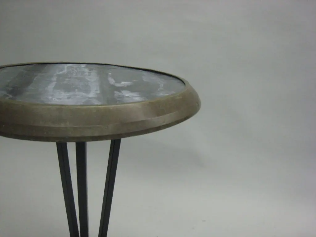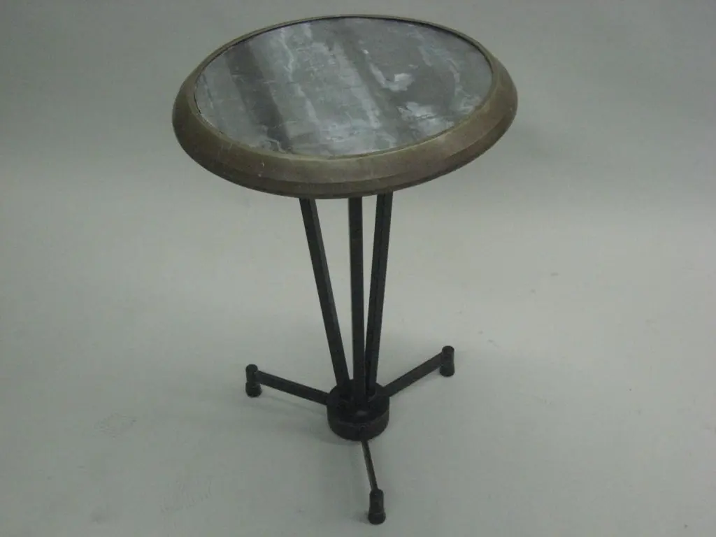 Two French, Mid- Century Modern Industrial Steel & Zinc Cafe Tables / End Tables