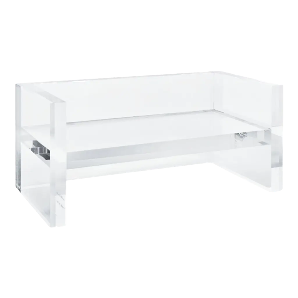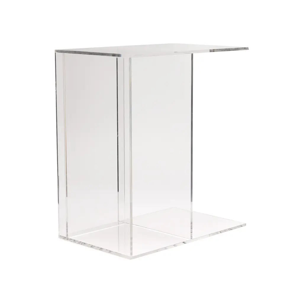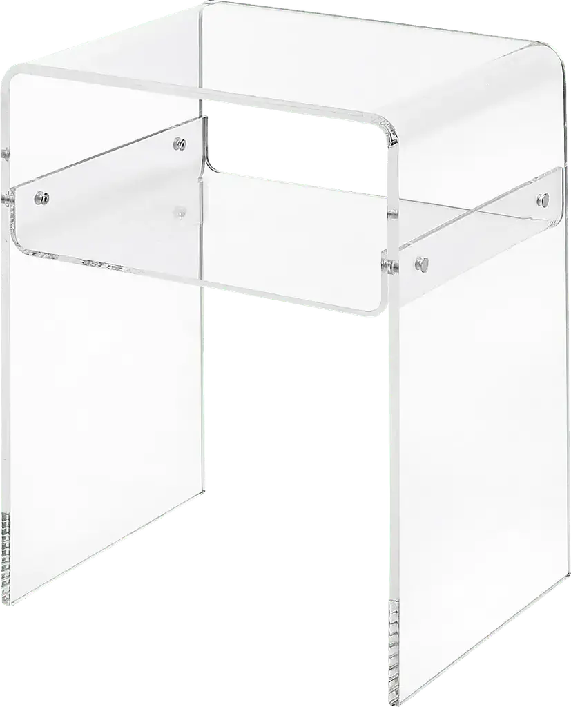 MoMA Exclusive: Cleverly designed for versatility, the Two-Way Side Table is a strikingly simple, shape-shifting piece. Crafted from planes of transparent acrylic, this small table playfully interacts with its surroundings, creating new colors and reflections specific to the space it lives in. The 16h x 18w x 10" design can be used horizontally as an eye-catching side table, or vertically as a stand that intersects a sofa to keep drinks and remotes handy. Designed in Montreal, the Two-Way Side Table is as versatile as it is sculptural. Weight capacity: 22 lbs.