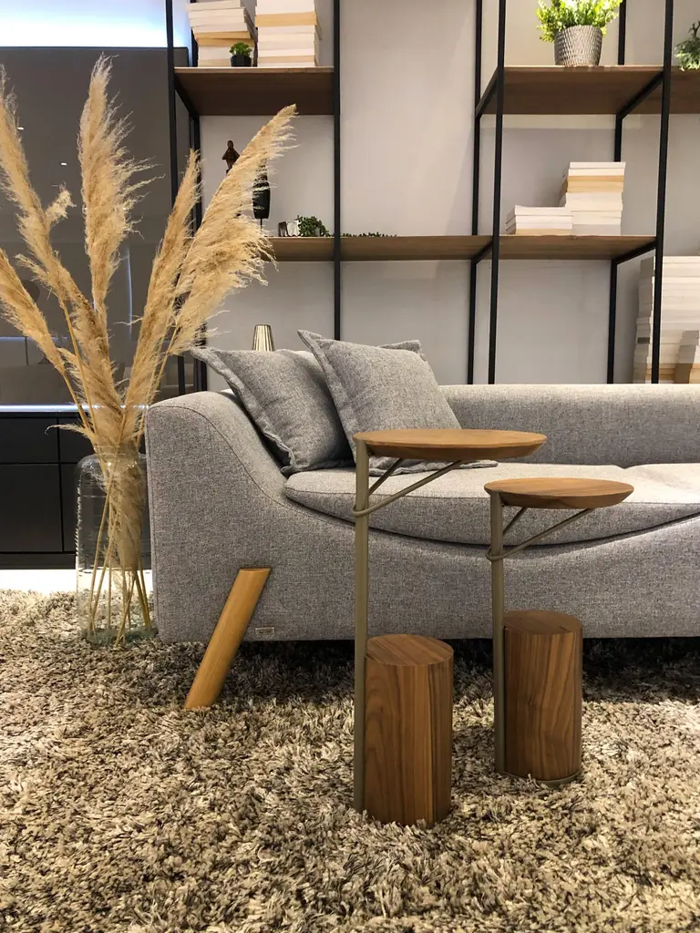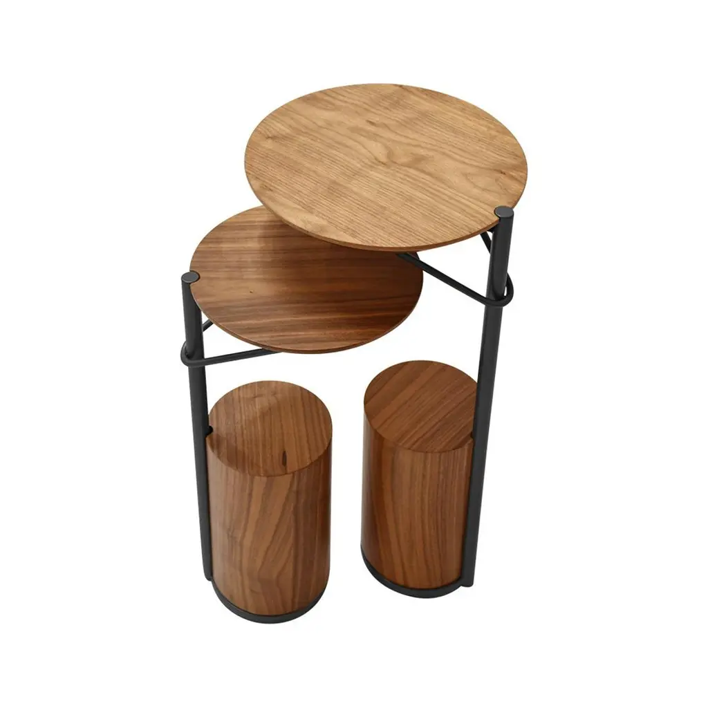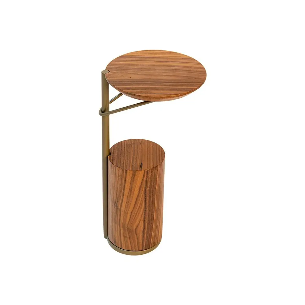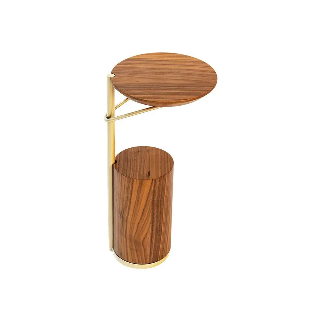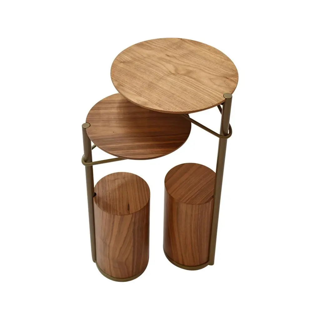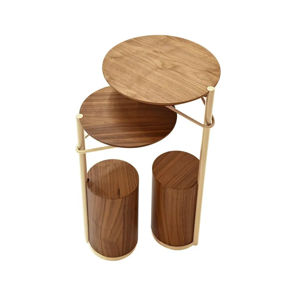 "Tyr" Side Table Set In Walnut Natural Wood Blade And Metal Brass Color