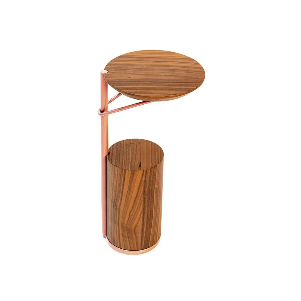 The Tyr's trace begins with the solid base machined in MDF coated with a elegant natural walnut blade, as well as the top.Supported by the metal rod of carbon steel with epoxy bronze paint. (the color could be customized).It can be handled easily by the metal rod in the environment.A small side table can be used as a support for the sofa into the living room. It has a timeless and contemporary design, which combines with different styles of interior decoration.The name Tyr must be associated with honor, courage, strength and justice. He is one of the most important gods in Norse mythology, a great inspiration for the creation of the piece.Side table set measurements:H 50 x W 25 x D 26.5 cm - lowH 60 x W 25 x D 26.5 cm - high.It's for indoor usability.Discover other pieces from our collection that match the Tyr side table in our storefront, and be enchanted!