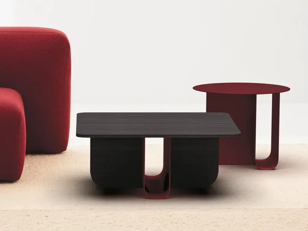 U is a collection of tables of various heights and sizes that can be used individually or as part of a set. Their main distinctive feature is a U-shaped support made of bent aluminium. Its soft curves inspired the rounded appearance of the tops, which come in three shapes: square or rectangular with rounded corners, and circular. There are two versions: 100% metal or metal and wood. The sculpturesque style with minimalist lines means that the U collection is ideal for both the contract market and private homes.
