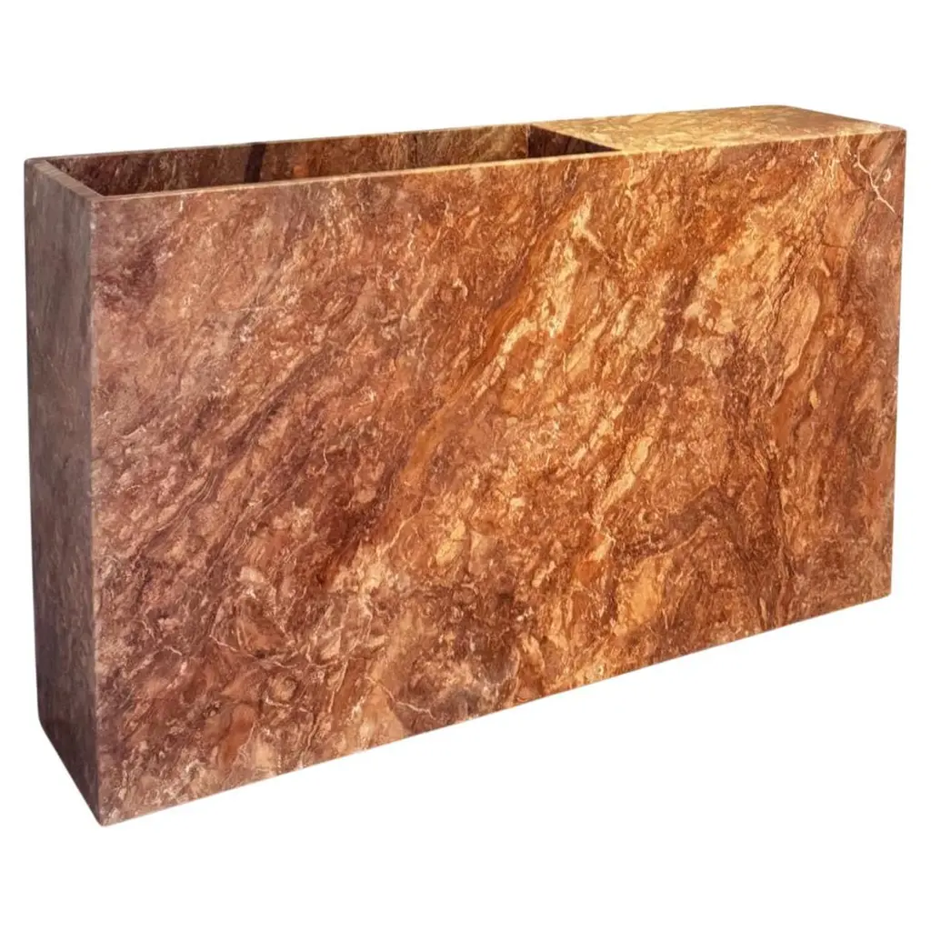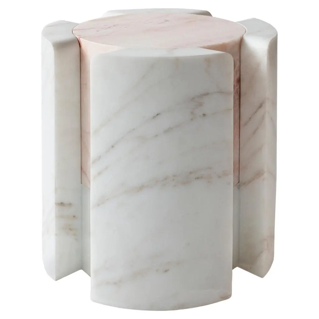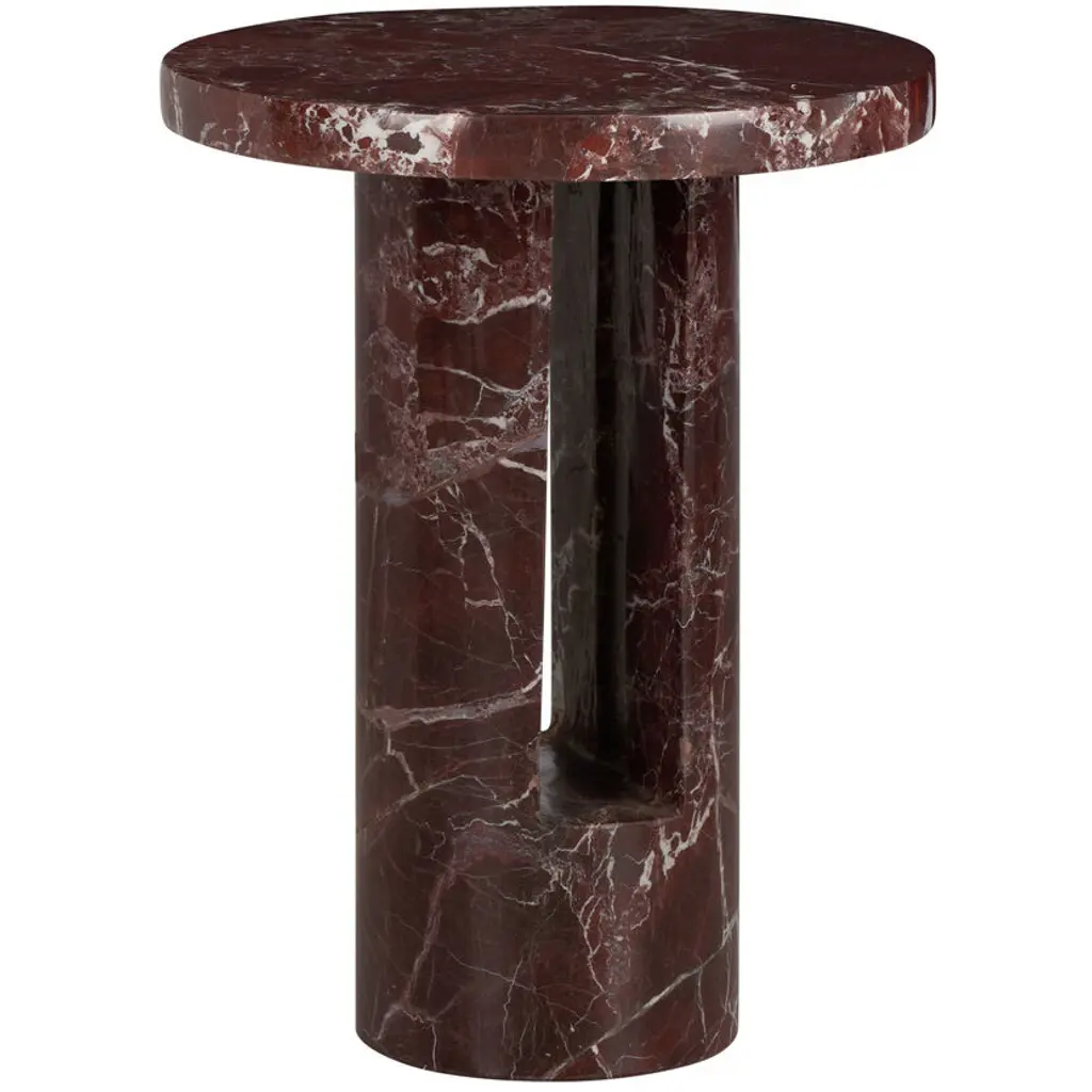 Artemis Red Travertine Side Table by RAFFINATODimensions: D 40 x W 30 x H 50 cm.Materials: Red travertine and glass.This table is available in different stone options: Red Travertine, Light Travertine, Silver Travertine, Calacatta Viola, and Brown Onyx. Please contact us.The Artemis table is a combination of a solid rectangular volume and an extracted cylindrical volume. Two oppositely rising surfaces generate a transparent and smooth plane. This design is a unique and elegant piece for your interior. It can blend with any interiors, as a bedside table, a side table, or decorative objects.RAFFINATO is a design brand specializing in natural stone. Inspired by the mystic nature of marbling art and the intercontinental spirit of Istanbul, designer Dicle Varsak transforms precious natural stones into outstanding design objects.RAFFINATO was created as an appreciation of the hidden gems of nature, such as marble, onyx, and travertine. The trace of time, infinite color and texture combinations, and fluid, dynamic creation are characteristic features of natural stone that ensure each design piece is unique and personalized.Our mission is to create functional and sculptural designs that enable users to establish a strong connection with the concept of beauty. Each design is the result of a refined combination of geometry, color, and texture.At the center of our work is a deep passion for design, producing high-end furniture, respecting natural stone, and revealing the unique pieces hidden within the stone.
