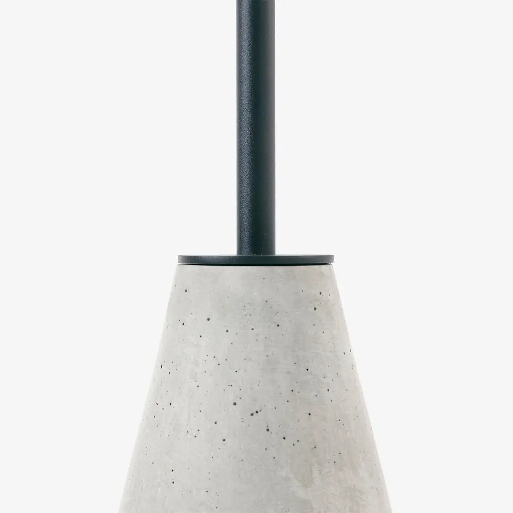 table with concrete base with carbon steel top with matte white microtexture electrostatic painting