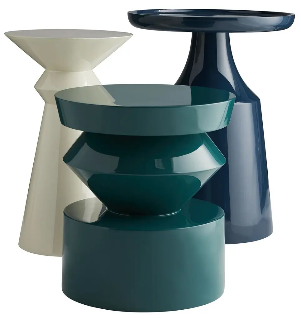 The peacock-green lacquer finish accentuates the sleek planes, curves, and angles of this sculptural side table.