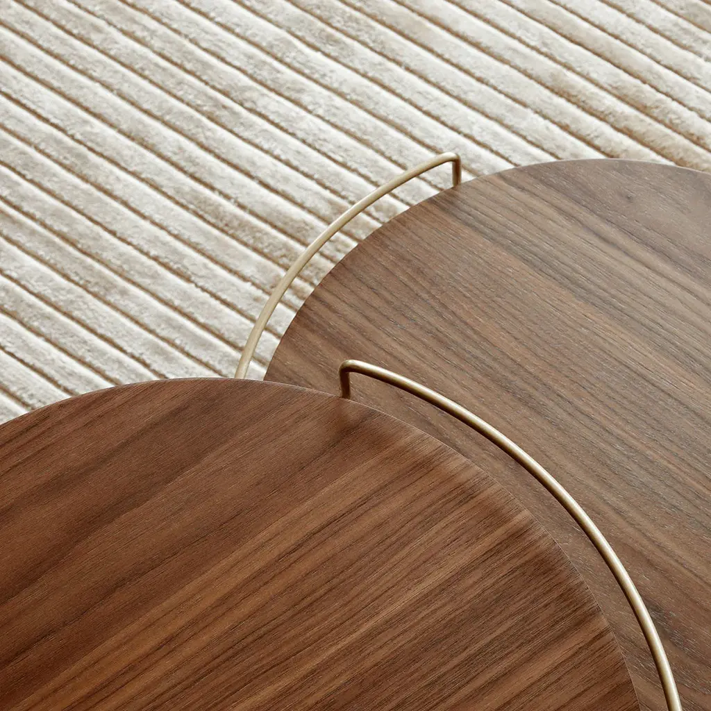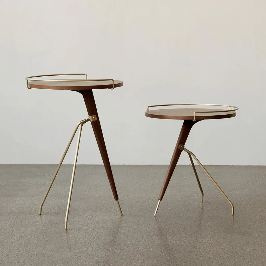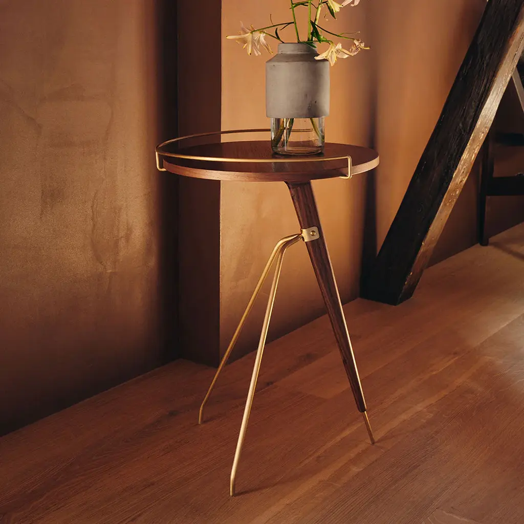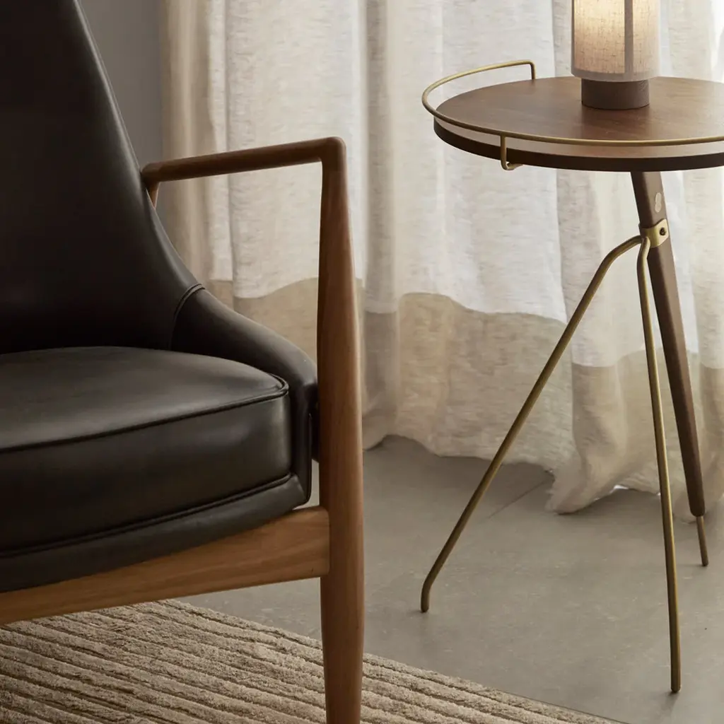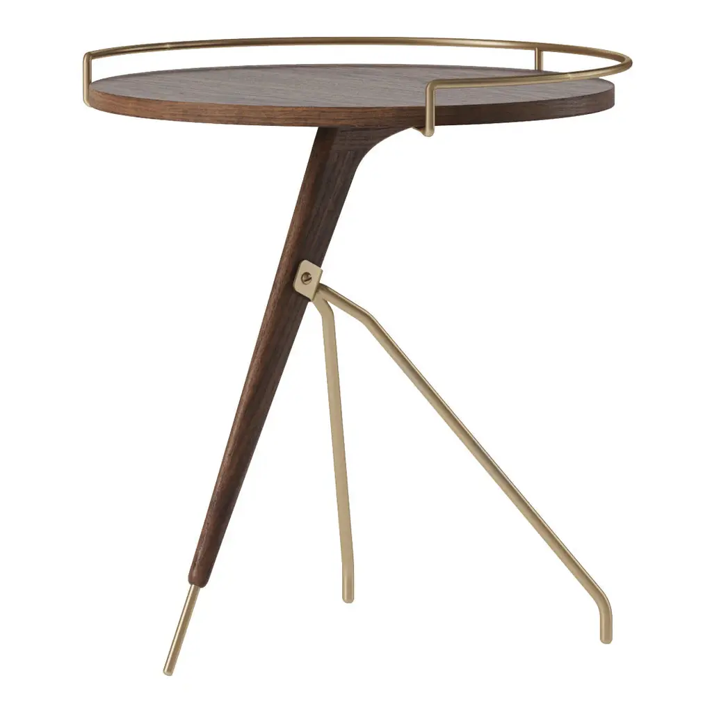 The Umanoff Side Table from Audo Copenhagen (formerly Menu) exemplifies timeless mid-century modern design that feels as fresh and relevant today as when Arthur Umanoff first conceived it in the 1950s. This reissued classic beautifully balances rich walnut wood with sophisticated brushed brass detailing, creating a striking visual harmony between materials that celebrates Umanoff's distinctive design language. The thoughtfully rounded top and tripod-inspired frame challenge conventional furniture silhouettes while maintaining perfect structural stabilitya hallmark of Umanoff's innovative approach to furniture design during America's mid-century modern movement. Despite its deliberately compact footprint, this versatile accent piece makes a significant design statement in any interior setting. The brass rim elegantly defines the walnut tabletop while serving the practical purpose of preventing items from accidentally sliding offshowcasing Umanoff's commitment to marrying form with function. Available in two perfectly proportioned sizes (Low: 17"L × 17"W × 17.7"H or Tall: 17"L × 17"W × 23.6"H), each version can support up to 11 pounds, making these tables ideal for displaying everything from cocktails and coffee cups to sculptural objects and treasured decorative pieces. Arthur Umanoff (1923-1985), a Pratt Institute graduate and significant contributor to American modernism, believed that exceptional design should be both beautifully constructed and attainable. His collaboration with furniture manufacturers like Shaver Howard and Post Modern Ltd allowed his vision of accessible luxury to reach American homes during the mid-century era. The Umanoff Side Table perfectly embodies his philosophy of combining natural materials with streamlined forms, creating pieces with staying power that transcend trends and fashion. Perfect for modern living rooms, bedside tables in contemporary bedrooms, or accent pieces in entryways and reading nooks, the Umanoff Side Table adapts effortlessly to various interior styles from minimalist to eclectic. Its slender, tapered lines and warm material palette create a sense of natural elegance while maintaining functional versatility. Experience the legacy of Arthur Umanoff's thoughtful design approach with this authentic reissue from Audo Copenhagenwhere Danish design sensibility meets American mid-century modern innovation in a piece that will become tomorrow's heirloom.