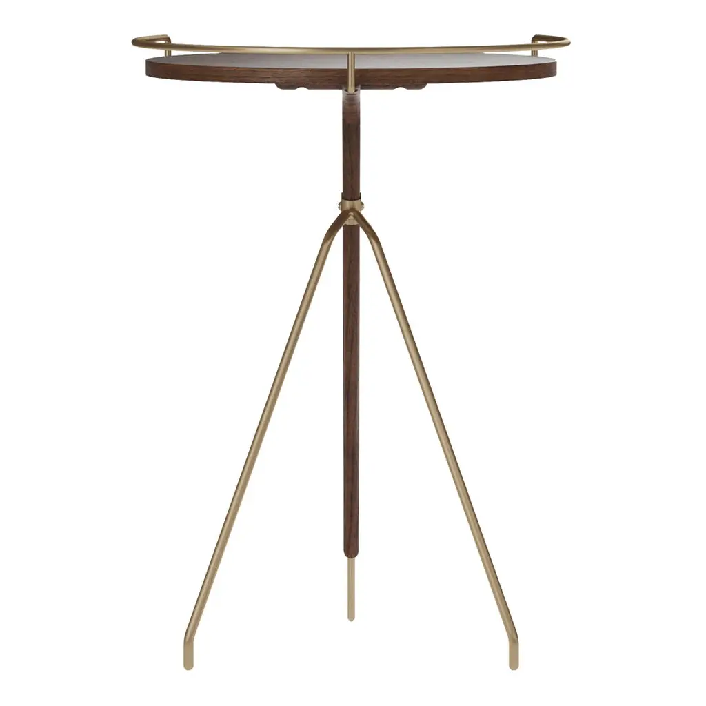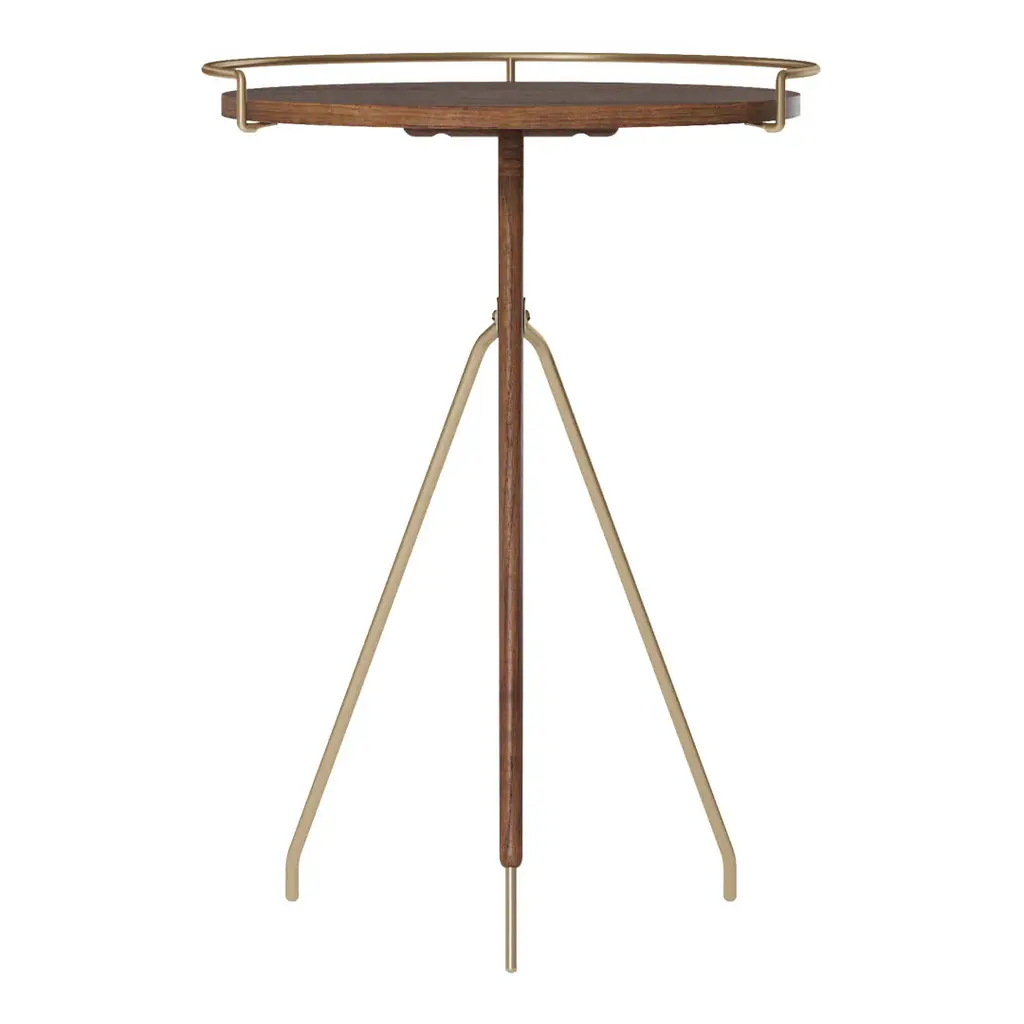 The Umanoff Side Table from Audo Copenhagen (formerly Menu) exemplifies timeless mid-century modern design that feels as fresh and relevant today as when Arthur Umanoff first conceived it in the 1950s. This reissued classic beautifully balances rich walnut wood with sophisticated brushed brass detailing, creating a striking visual harmony between materials that celebrates Umanoff's distinctive design language. The thoughtfully rounded top and tripod-inspired frame challenge conventional furniture silhouettes while maintaining perfect structural stability—a hallmark of Umanoff's innovative approach to furniture design during America's mid-century modern movement.Despite its deliberately compact footprint, this versatile accent piece makes a significant design statement in any interior setting. The brass rim elegantly defines the walnut tabletop while serving the practical purpose of preventing items from accidentally sliding off—showcasing Umanoff's commitment to marrying form with function. Available in two perfectly proportioned sizes (Low: 17"L × 17"W × 17.7"H or Tall: 17"L × 17"W × 23.6"H), each version can support up to 11 pounds, making these tables ideal for displaying everything from cocktails and coffee cups to sculptural objects and treasured decorative pieces.Arthur Umanoff (1923-1985), a Pratt Institute graduate and significant contributor to American modernism, believed that exceptional design should be both beautifully constructed and attainable. His collaboration with furniture manufacturers like Shaver Howard and Post Modern Ltd allowed his vision of accessible luxury to reach American homes during the mid-century era. The Umanoff Side Table perfectly embodies his philosophy of combining natural materials with streamlined forms, creating pieces with staying power that transcend trends and fashion.Perfect for modern living rooms, bedside tables in contemporary bedrooms, or accent pieces in entryways and reading nooks, the Umanoff Side Table adapts effortlessly to various interior styles from minimalist to eclectic. Its slender, tapered lines and warm material palette create a sense of natural elegance while maintaining functional versatility. Experience the legacy of Arthur Umanoff's thoughtful design approach with this authentic reissue from Audo Copenhagen—where Danish design sensibility meets American mid-century modern innovation in a piece that will become tomorrow's heirloom.