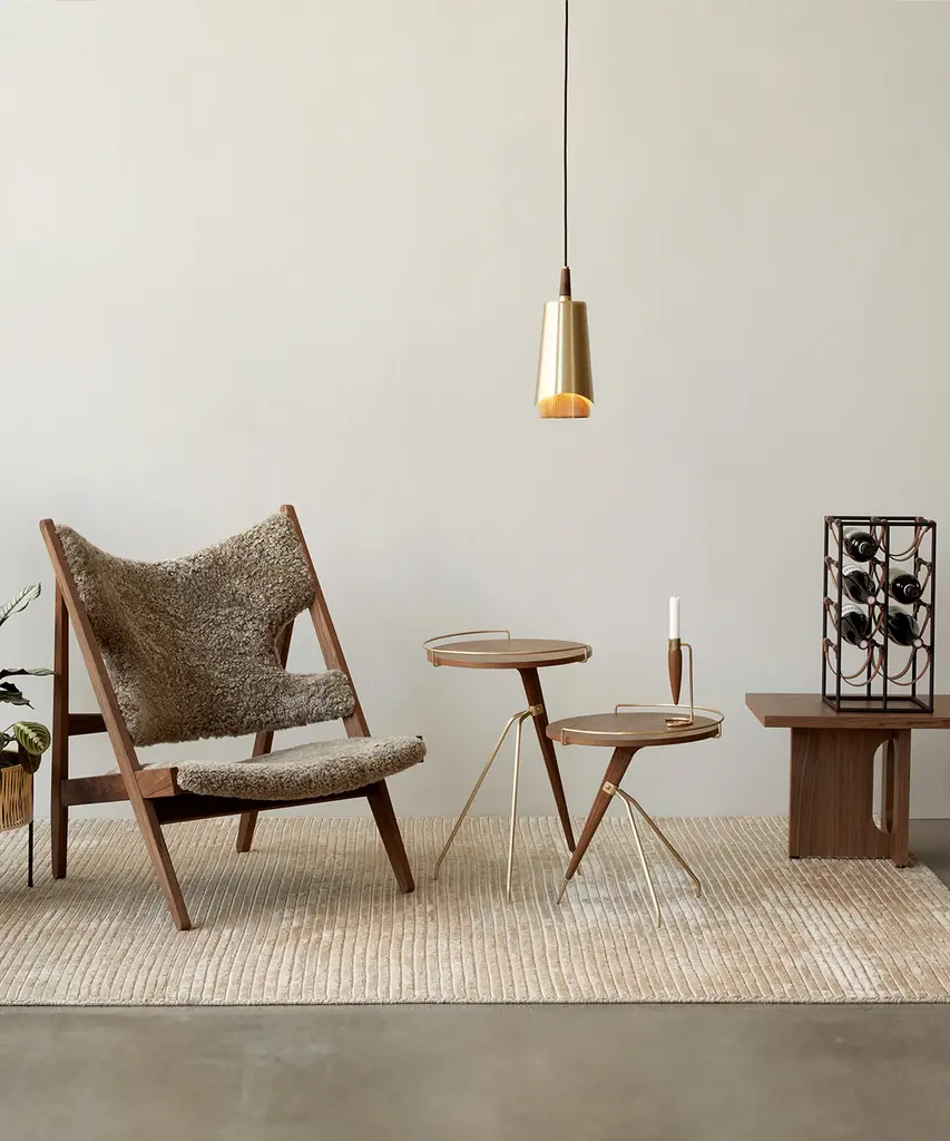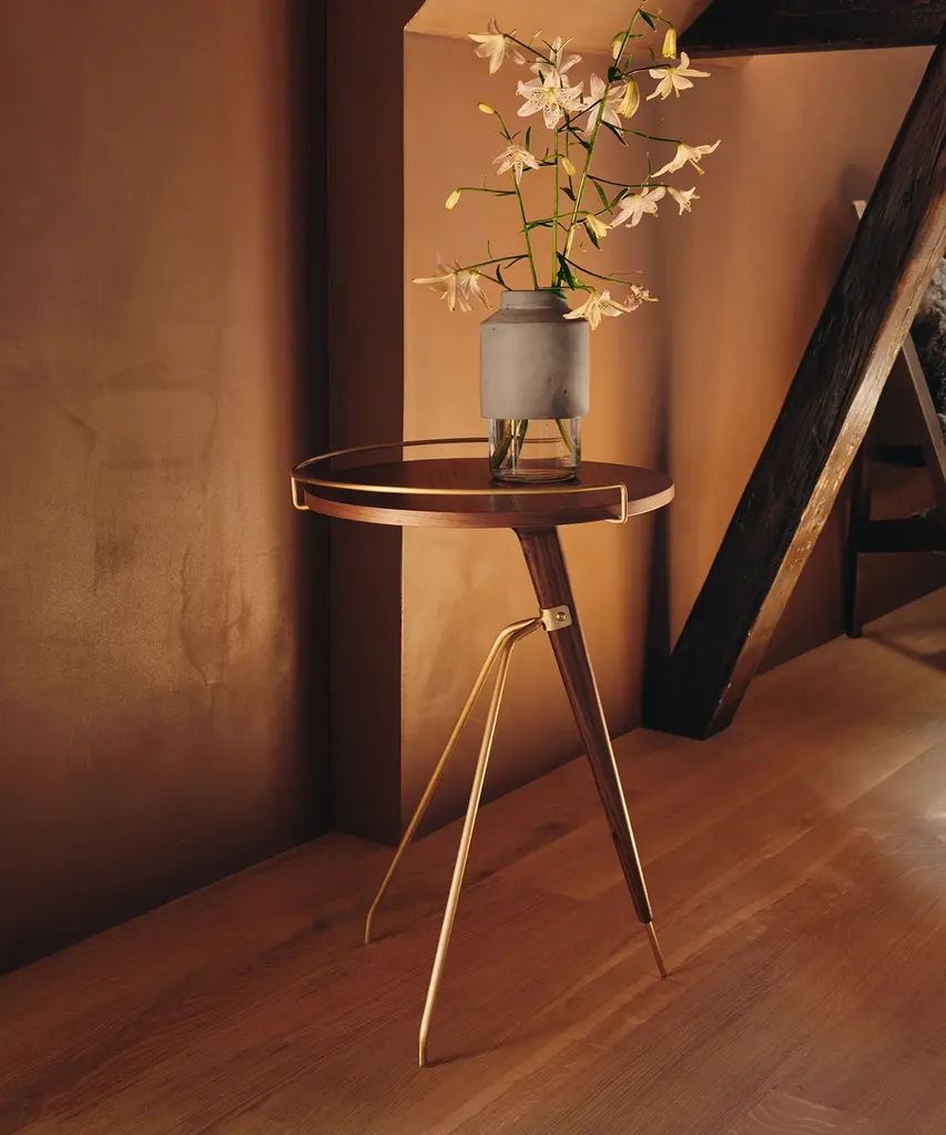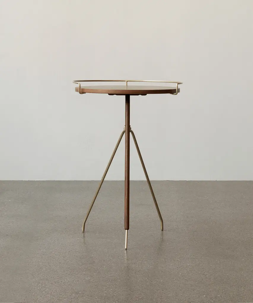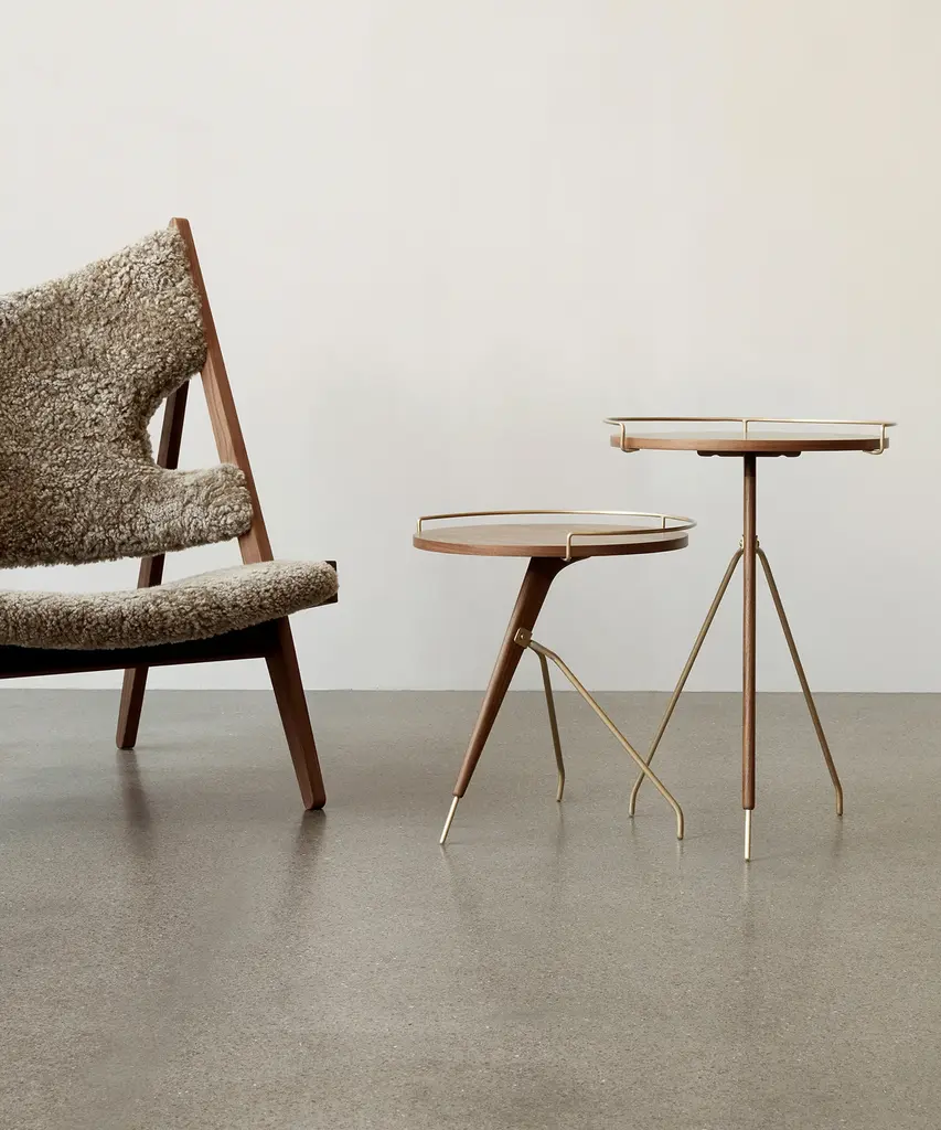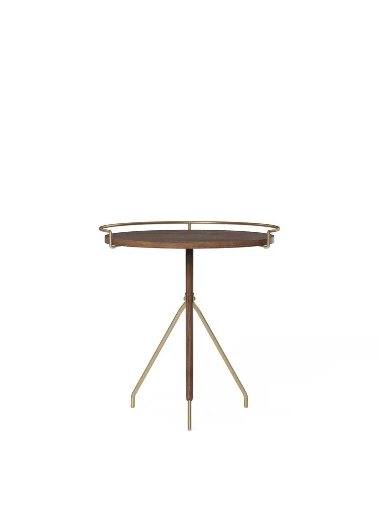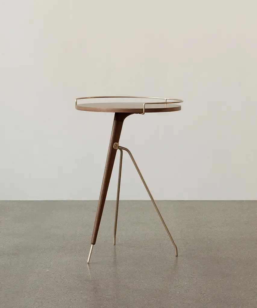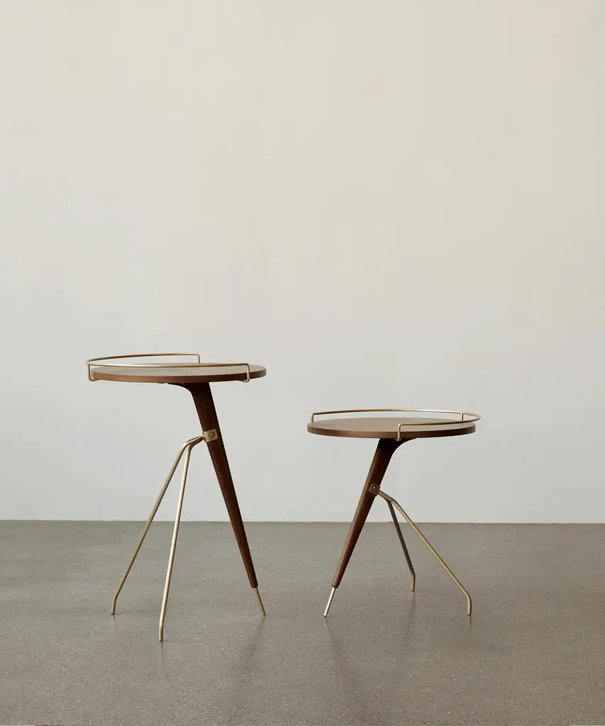 As relevant today as it was when first designed by Arthur Umanoff in the 1950s, the reissued Umanoff Side Table balances walnut and brass on its rounded top and tripod inspired frame to create a table that challenges convention. Despite its decidedly small footprint, the versatile piece makes a big impact as a mid-century modern design for a glass of wine, mugs of coffee, or a delicate vase. The Umanoff Side Table is available in two sizes. Designed by mid-century design master Arthur Umanoff and produced by Audo Copenhagen.