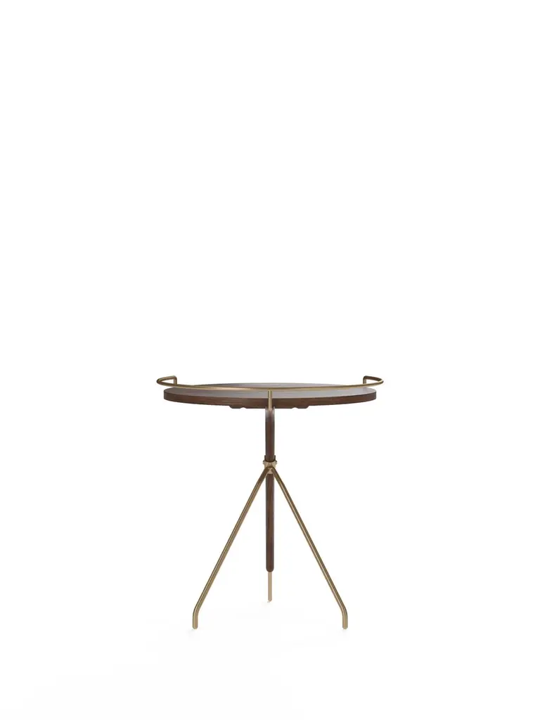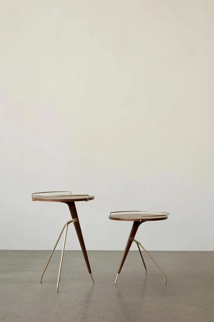 As relevant today as it was when first designed by Arthur Umanoff in the 1950s, the reissued Umanoff Side Table balances walnut and brass on its rounded top and tripod-inspired frame to create a table that challenges convention. Despite its decidedly small footprint, the versatile piece makes a big impact as a mid-century modern design for piles of books, mugs of coffee or flower-filled vases. The Umanoff Side Table is available in two sizes.Material : Solid Walnut and BrassPRODUCTION PROCESS : CNC cut solid wood and hand-made solid brass componentsDIMENSIONSØ: 43/40 cm / 17/15,7” , H: 45 cm / 17,7”Arthur Umanoff (1923–1985) was an American-born industrial designer, noted for his contribution to the American midcentury modern movement. Upon graduating from New York’s prestigious Pratt Institute and the American School of Design in the beginning of the 1950s, Umanoff began collaborating with Post Modern Ltd, a New York design company that produced and sold modernist wrought iron and wood designs. Throughout the 1960s, he worked closely with the furniture manufacturer Shaver Howard, who put many of his furniture designs into production. He also designed clocks for Howard Miller. Arthur Umanoff believed that design should not only be beautifully constructed and functional, but that it should also be attainable. Using natural materials and new methods to reimagine traditional furniture pieces, he created versatile designs for the home that were celebrated for their quality as for their simplified, functional forms and staying power. Reflecting warmth and practicality, his designs were often imagined in wrought iron, rattan, walnut and birch, imbued with functional details yet retaining a sense of natural elegance thanks to their slender, tapered lines.