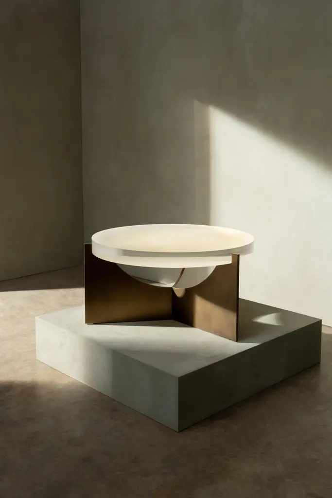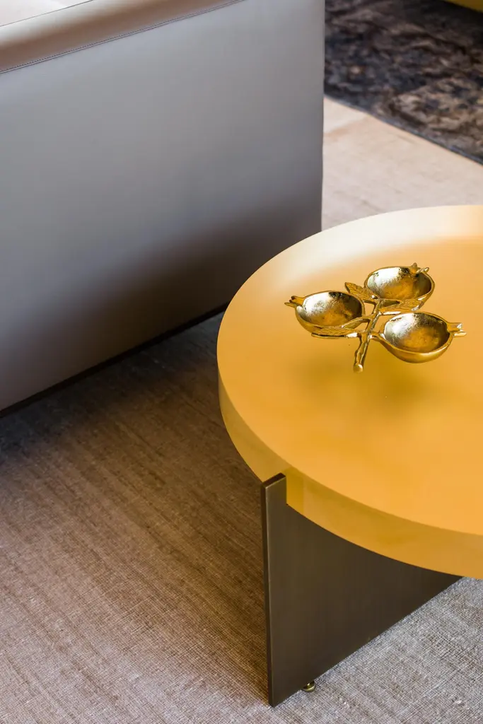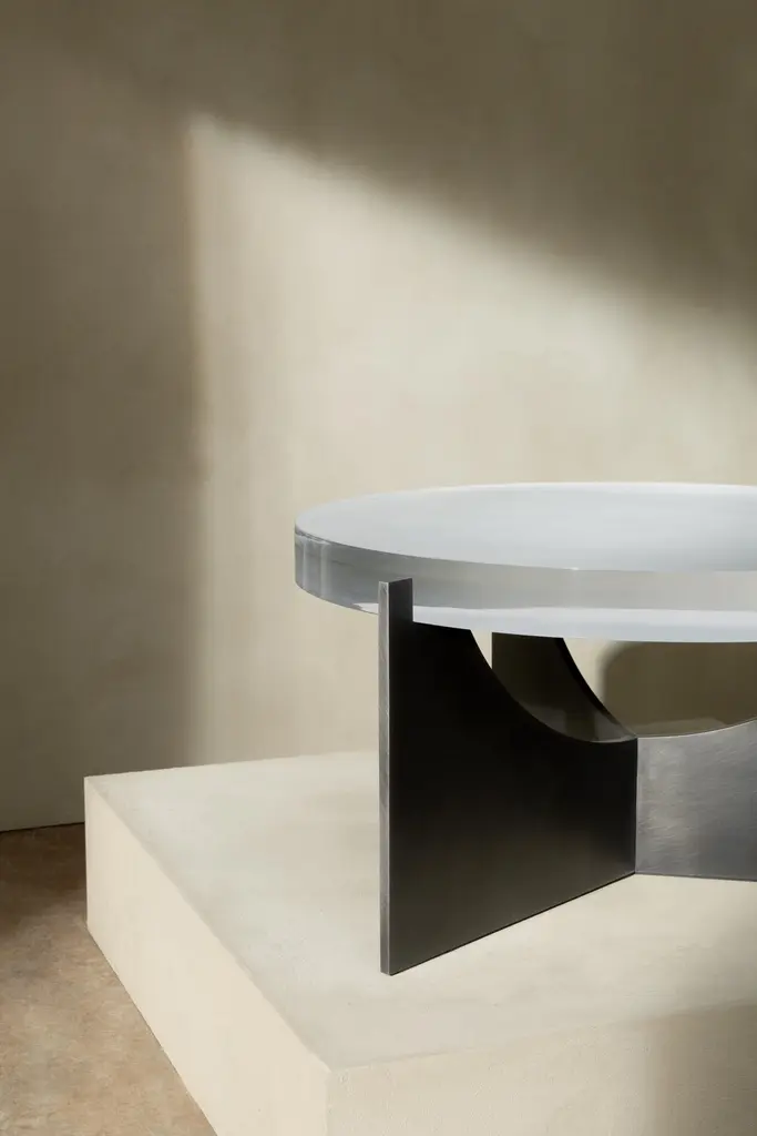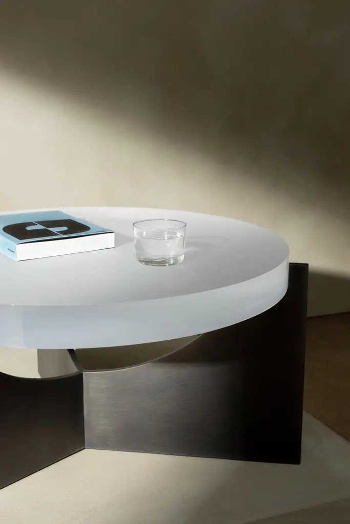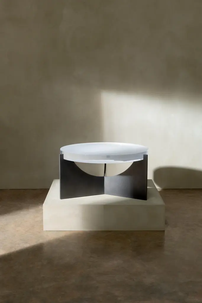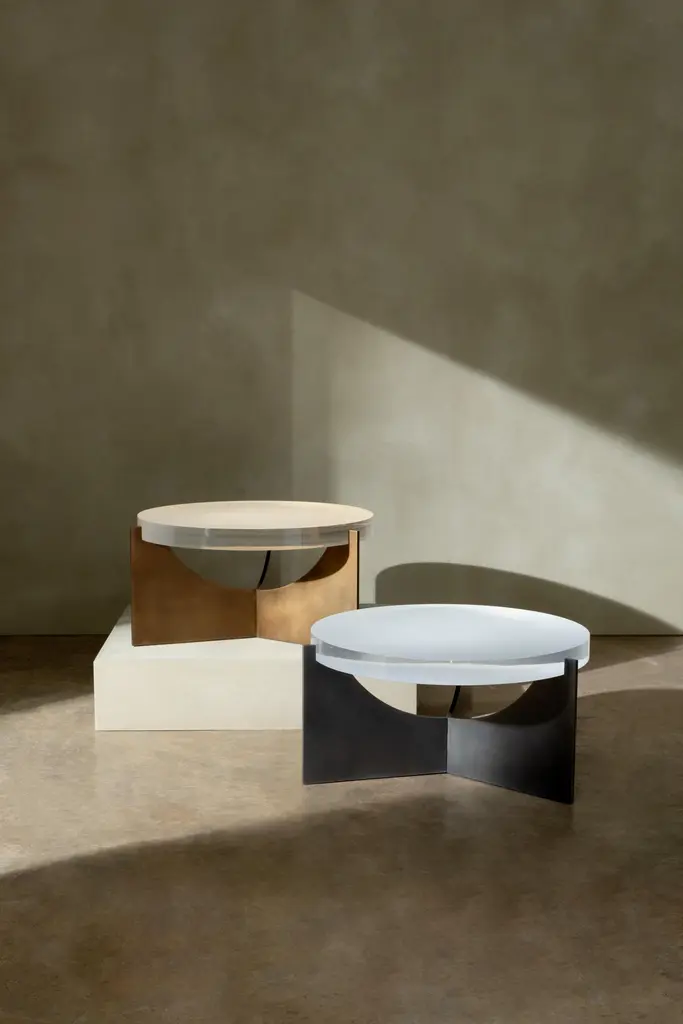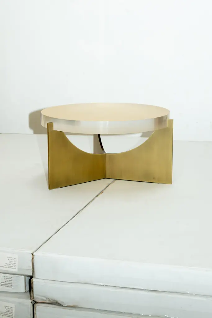 Umbra side table by Simon HamuiDimensions: D 70 x W 70 x H 37 cmMaterials: metal, Acrylic, gold leafAlso available in different dimensions and materials. Side table made up of a metal base with a solid acrylic top underlined with a silver or gold leaf that give a touch of color to the piece.Simonhamui Collection is a line of high-end furniture created by Simon Hamui. The collection is another expansion of the brand that brings together classic pieces and represents his style and body of work throughout the years.The pieces in the collection are timeless and versatile and can work well in a variety of spaces both individually or in conjunction.