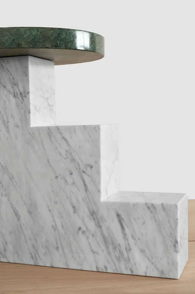 Unique Escalier and table by Jean-Baptiste Van den HeedeUnique Piece Signed and NumberedDimensions: W 70 x H 51 cm Materials: Marquina marble, Carrara marble Other sizes and materials available.ESCALIER 1 2 3 auxiliary side tables. Carrara marble with a single block and top in Carrara marble, Marquina black marble or Indio green to choose from. There is also a base version in patinated metal.A very versatile piece of furniture since it can be combined with different materials and sizes and also bought without a lid.In a piece that we can consider ART DESIGN since it can be seen as a sculpture with a function of side tables at the same time.A spectacular piece of furniture for luxurious environments. Each piece of furniture is signed and unique for its characteristics such as solid wood plank or hand-cut stone.Each piece of furniture is packed in a wooden box for maximum care.Jean-Baptiste Van den Heede defines himself as a cabinetmaker-designer and an artist of academic training and family tradition. He has achieved unique designs of national and international prestige and has several awards in avant-garde furniture.Born in Argentina in 1966, from an Argentine mother and a Belgian father. At 5 years of age he and his family moved to Belgium.To train as a wood professional, he first studied 4 years of carpentry. Then he continued training in cabinetmaking and carving for 5 more years. Always in search of contributing something more to his trade, he studied furniture and antique design, culminating this with the study of Sculpture at the Royal Academies of Fine Arts in Liège (Belgium) and graduating with honors.Work the stone, the wood and experience the forge. From the beginning it is directed towards a search for signs, abstract writings and unrealistic figures in analogy with other “Primitive” cultures. He taught drawing and sculpture in Brussels at the private school “la main et l´ esprit” As well as summer courses in Liege (Belgium) “les ateliers d´art contemporain”.In 1995 he went to Barcelona where he taught and investigated the reliefs of different supports such as trees, floors, and especially sewer covers.He searched again analogies between current art and Prehistoric, African art, etc.Participated in several exhibitions both at the artistic level and avant-garde design.In 2002, he moved down to Albacete and then to a town in the province where he still works.It is defined as “a search engine without haste or guidelines.” He says: “I only work when I feel a strong and positive inspiration invade me, an energy that I capture from matter, from the air and that I return doing the work until I feel a connection with it.”Private workshop of contemporary art in Letur (Albacete) until 2009.He currently works in his workshop-studio in the Sierra de Madrid (Guadalix de la Sierra) following his career as a cabinetmaker-designer and artist while teaching his trade to students interested in wood.