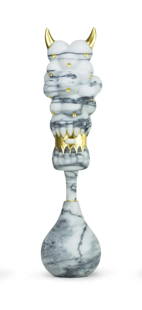 Unique Swinger Modern Gargoyle by André Teoman StudioDimensions: W 6 x D 6 x H 49 cmMaterials: Tiger Skin Marble, Gold LeafAndré Teoman born in Viana do Castelo, Portugal in 1989, was raised between Viana do Castelo and Istanbul. Teoman took design classes in Viana do Castelo. Is experience it the world of puppetry and theater also had an effect on his the love for the fantasy world.In 2012, he left his hometown for Porto to start working with several luxury design furniture brands such as Boca do Lobo and Koket, where he developed pieces like the Newton Dining Table, Piccadilly Cabinet or the Hypnotic Chandelier considered trends from many trendsetters. He also won the Young Design International 2014 Award by the Light + Building Messe Frankfurt Fair. By the end of 2014 he left to start a new adventure…. his own studio that started in the beginning of 2015.Making a difference at his hometown local artisans is now as important as to make meaningful projects. Preserve such craftsmanship is a mission and a desire to join their best craftsmanships with other great techniques that are being forgotten around the world. He creates his own world with wicked things and to turn them into a symbolization of distinctive taste and humor. Looking at emotion as one of his priorities the pieces have this strong emotional bond with the concept that make the user look twice and thing about it.