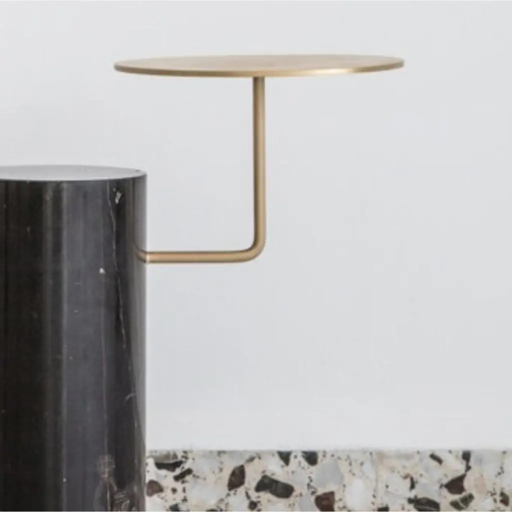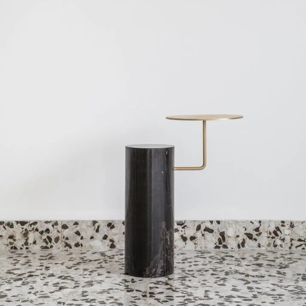 Unique masnad brass side table by Borgi BastormagiDimensions: W 25 x D 36 x H 52 cmMaterial: Brushed brass, marbleAlso available in black steel, brushed stainless steel, and with steel plate.Part of the folliland collection, Masnad is a small side table that fits perfectly next to a couch, or among a cluster of coffee tables. Masnad also works perfectly as a bed table.Borgi Bastormagi was founded in 2017 when Nada and Etienne were invited to participate in Milan’s Fuori Salone with their [me]rror project, an installation designed to reflect fragmented body parts. Their first collection is [Folli land], an extension of their [folli] piece, a furniture piece for nature. Both Nada and Etienne live and work in Beirut, drawing inspiration from their surroundings and daily lives. Fusing tradition with modernity, their designs are influenced by everyone’s attempt to find moments of balance and harmony amidst the chaos of the city.