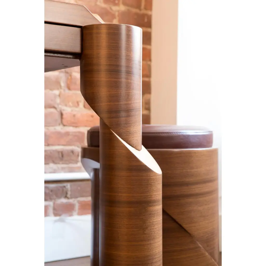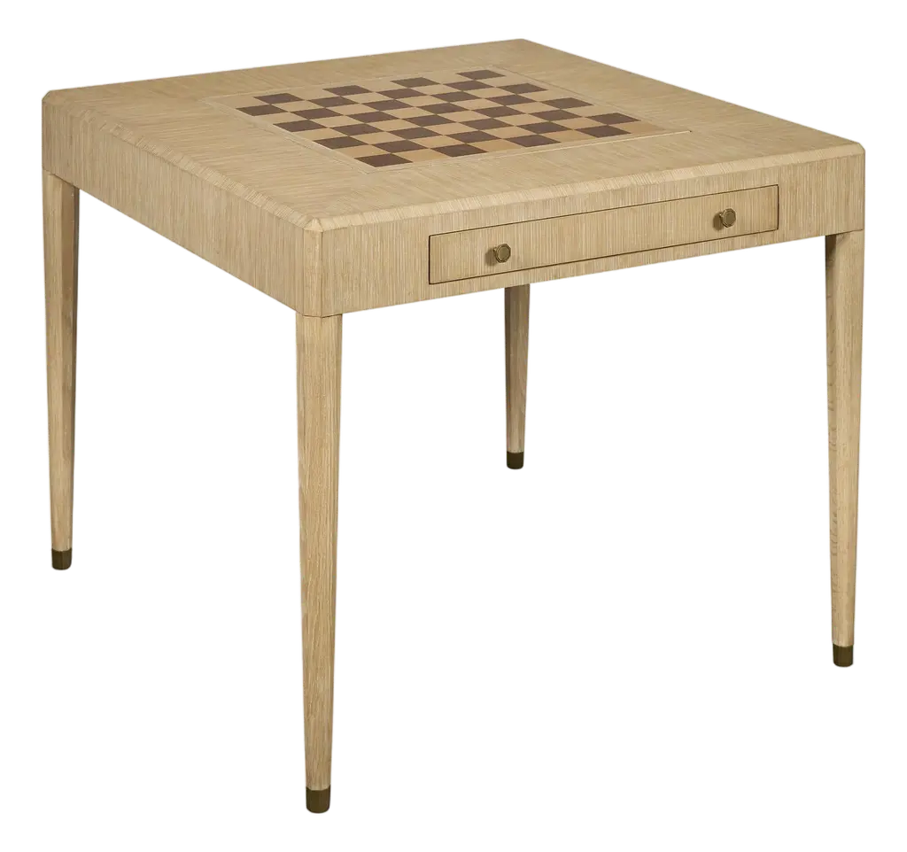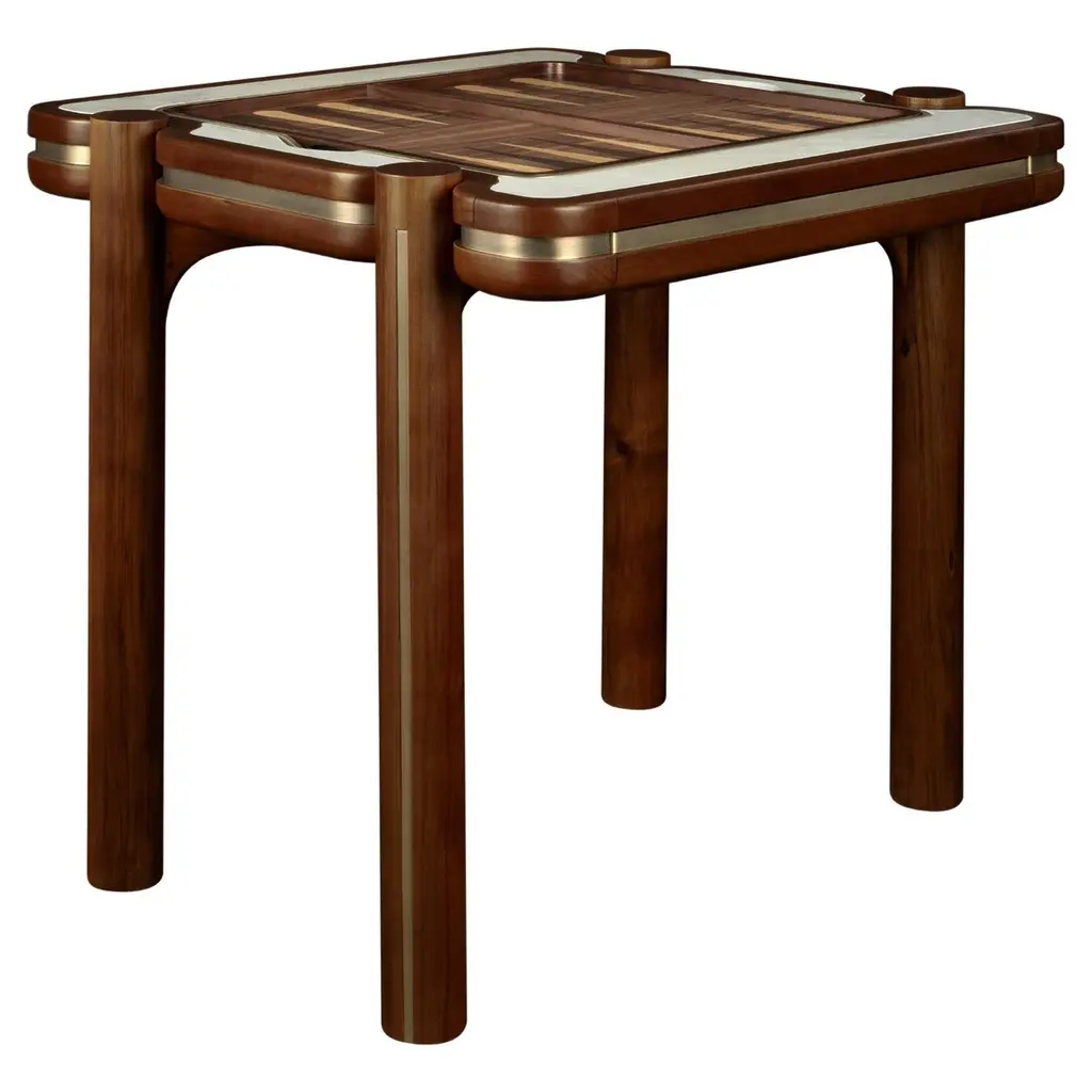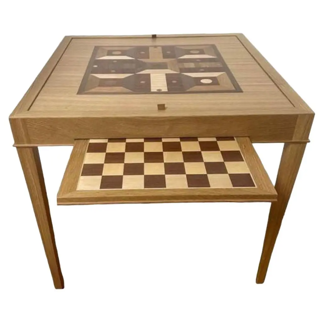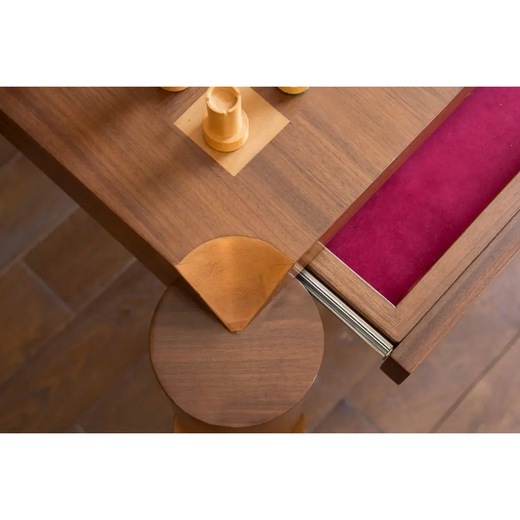 Unique Matte Grandmaster’s game table by Ekin VaronDimensions: W 101.6 x D 101.6 x H 76.2 cm Stools: D 35.5 x 43.1Materials: Walnut, maple veneer, leather.Backgammon & ChessThe ancient game of chess is based on strategy and winning is ultimately being the better strategist. The table was designed to reflect this exchange between opponents. The players think long-term, protect certain pieces, while losing other pieces to get ahead in the game. This constant change in mindset: protect, let go, lose, capture creates a shift in power throughout the game, and the table reflects these shifts. The delicate reveals and movements on the table and its legs are an idea into battle between a player and his opponent.The lid has chess board on one side, and plain walnut veneer on other. There is a magnet within the lid, so you can pick up lid with a magnet piece. It can be used as chess/backgammon and simple side table. Comes with 2 sitting stools. The drawer to store game pieces as well as put your cocktail glass while playing is lined with leather or felt.Ekin Varon is the founder and creative director of Ekin Varon Design Studio. Born and raised in Istanbul, Ekin has worked in various architecture firms and furniture design studios after completing her academic education in the furniture department of Rhodes Island School of Design. Having a sculptor mother and a father who is in the textile business, Ekin grew up having appreciation of various artistic disciplines and a desire of creative expression. In 2020, former co-founder of 15 West Studio, founded Ekin Varon Design Studio. Interdisciplinary art is at the center of Ekin’s design approach. Using various craftsmanship techniquesat at her designs, she creates multi layered, unique furniture, objects and environments. Originality is the main driver of her designs and she achieves that by creating timeless designs that harmonize modern aesthetics with traditional Turkish craftmanship.
